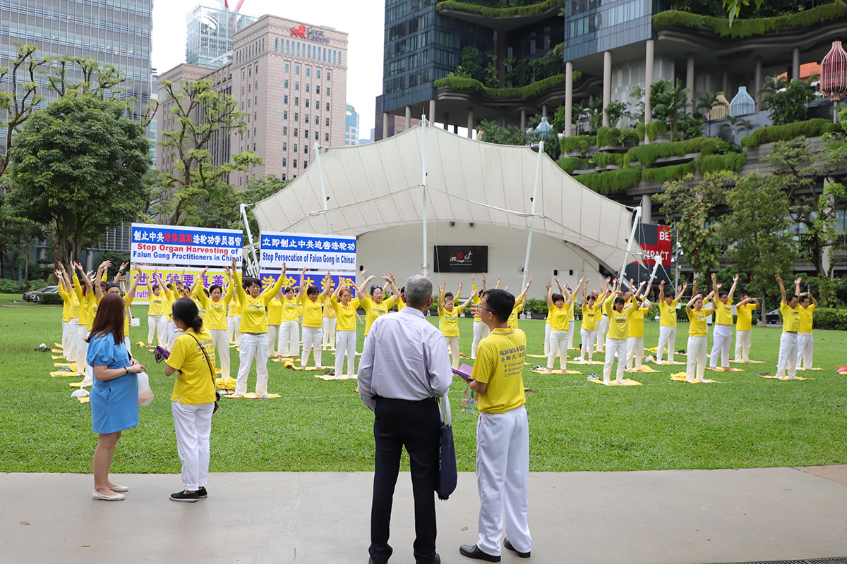 ![]() 图1~2:二零二三年七月十一日傍晚,新加坡法轮功学员在芳林公园举办反迫害二十四周年的纪念活动。图为学员们在集体炼功。 |