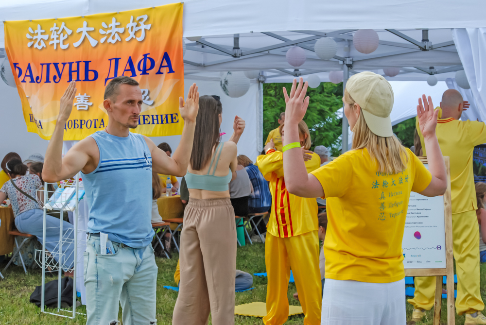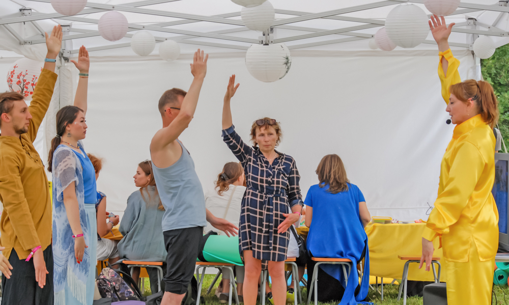 【明慧网二零二三年七月十五日】二零二三年七月二日,来自俄罗斯的部分法轮功学员参加了莫斯科第九届国际瑜伽节的庆祝活动。该活动在察里津诺博物馆保护区(Tsaritsyno Museum Reserve)举行,吸引了七十多家参展商和超过十万名观众。来自俄罗斯不同行业的民众尝试学炼法轮大法的功法 ,很多人都感受到能量。