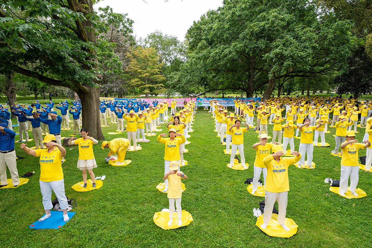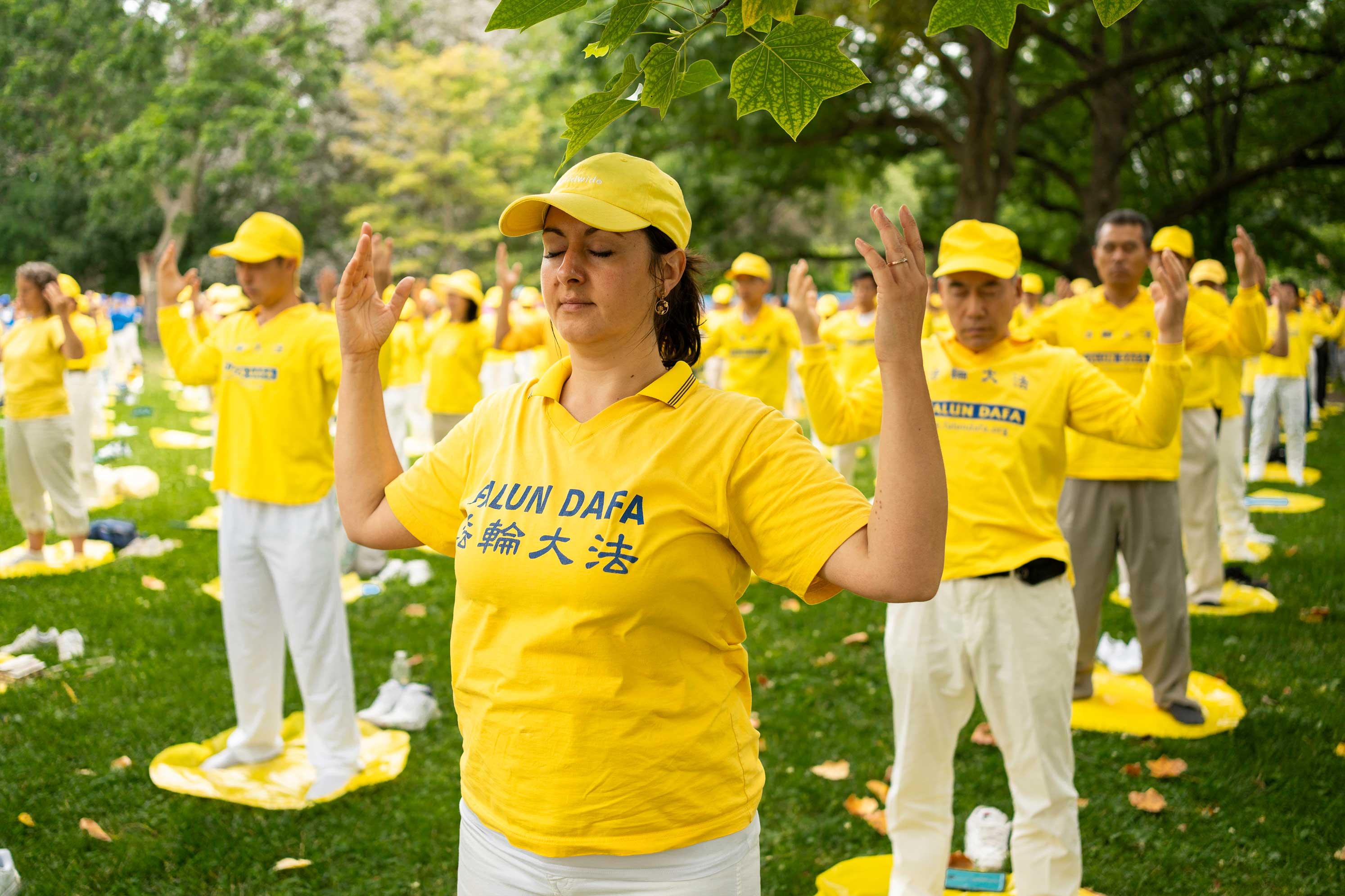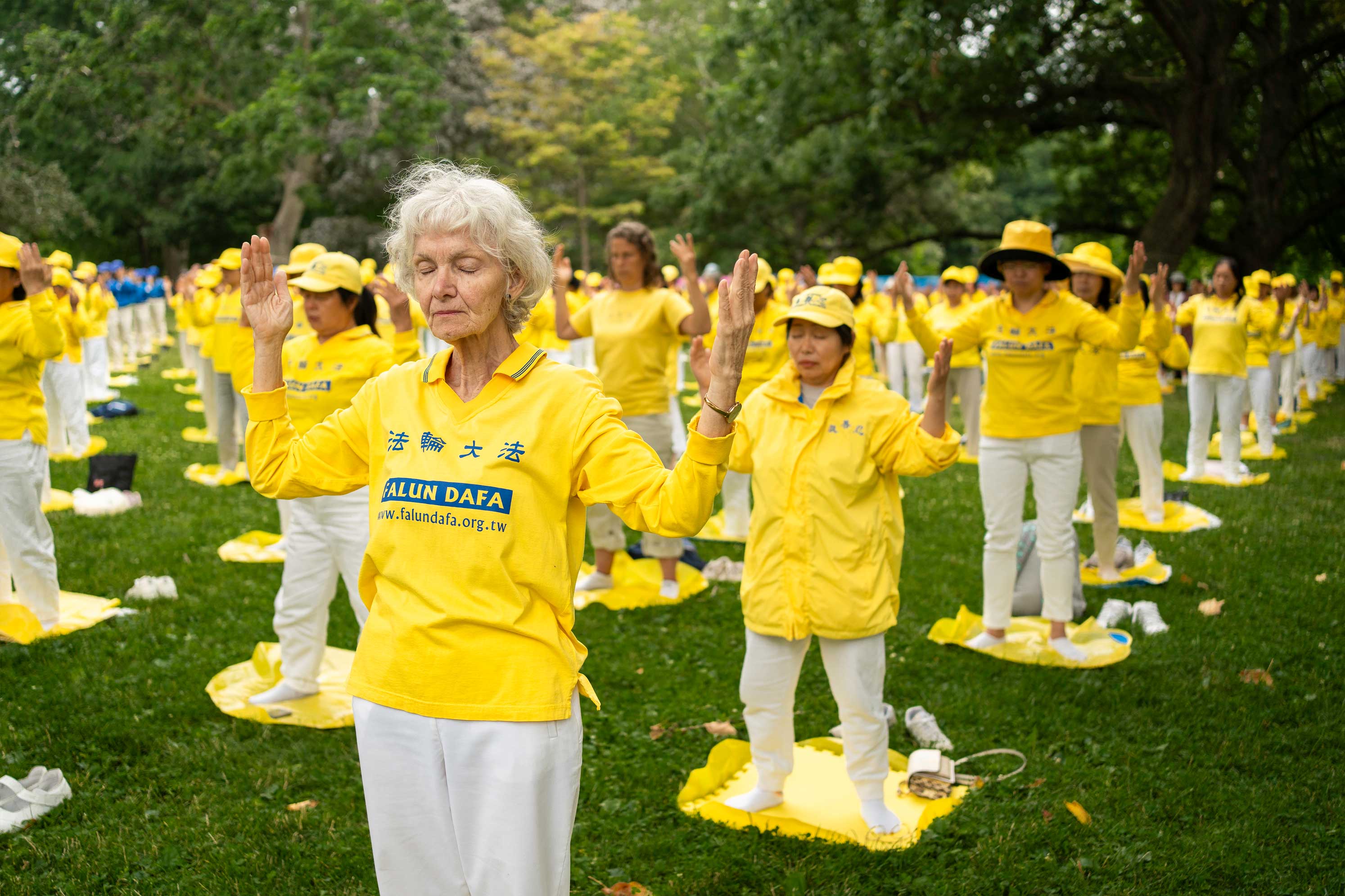 偶遇多伦多学员在草地上集体炼功,她表示欣赏:“我想,打坐能荡涤心灵。同时,随着对真、善、忍的理解加深,会成为更平静、向上、乐观和完善的人。”