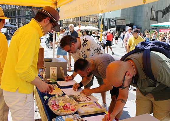 七月十五日,奥地利部分法轮功学员聚集在维也纳斯蒂芬广场,揭露中共在过去二十四年对法轮功的残酷迫害,并呼吁停止这场迫害。