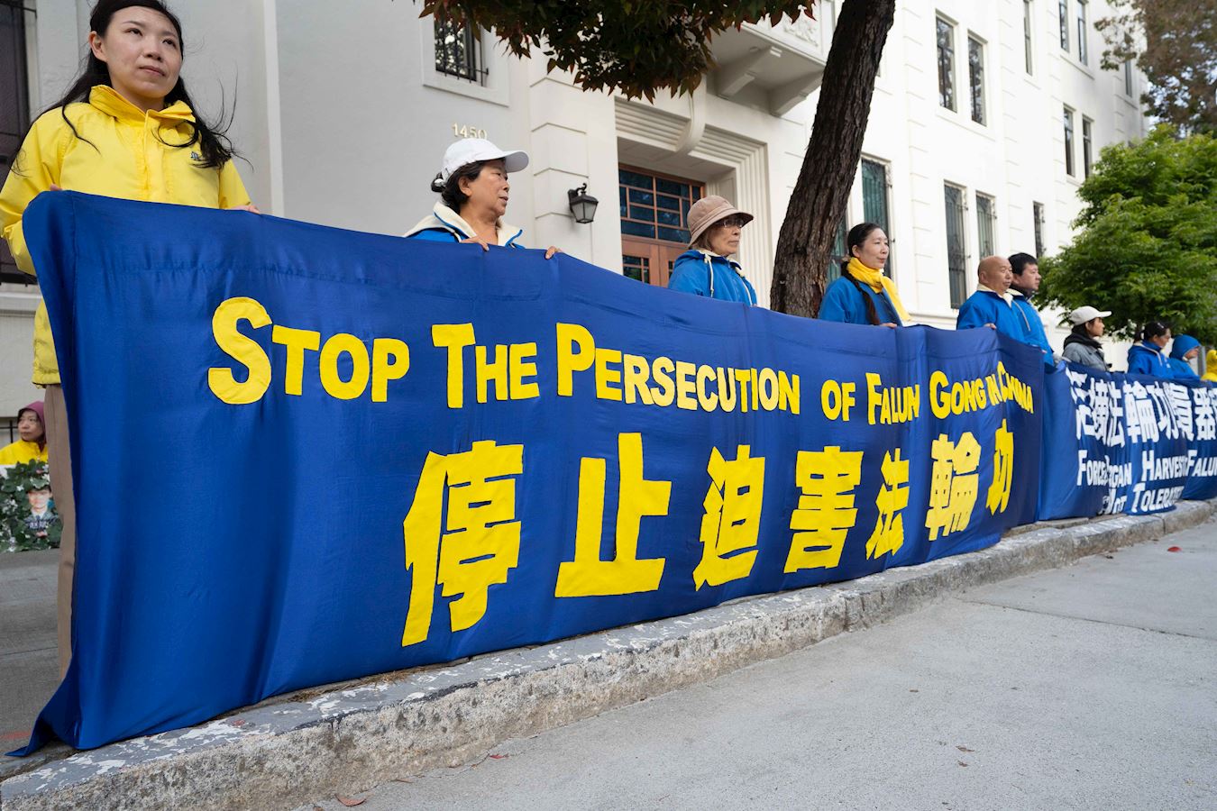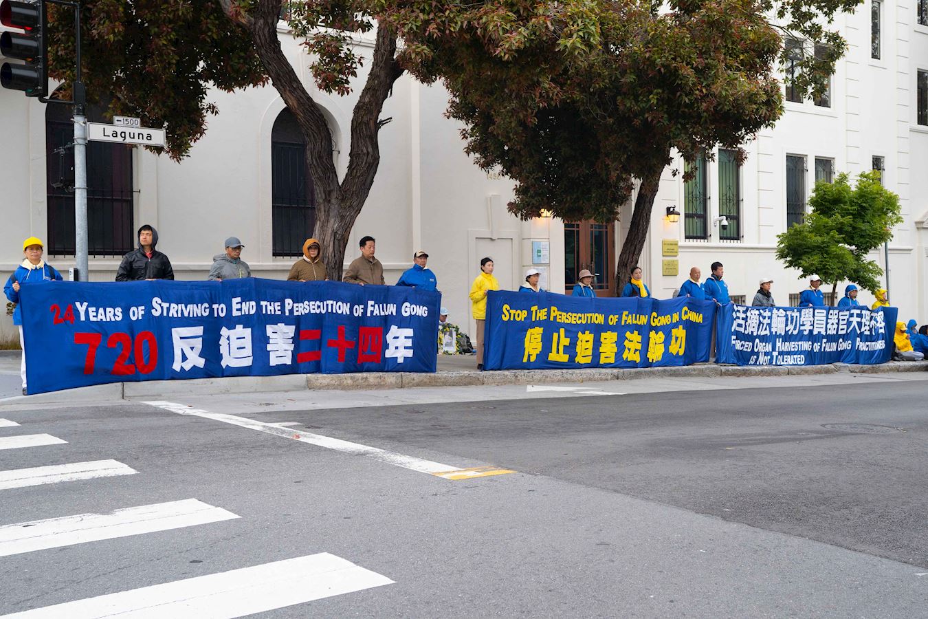 图1~9:法轮功学员在旧金山中领馆前举行烛光夜悼活动