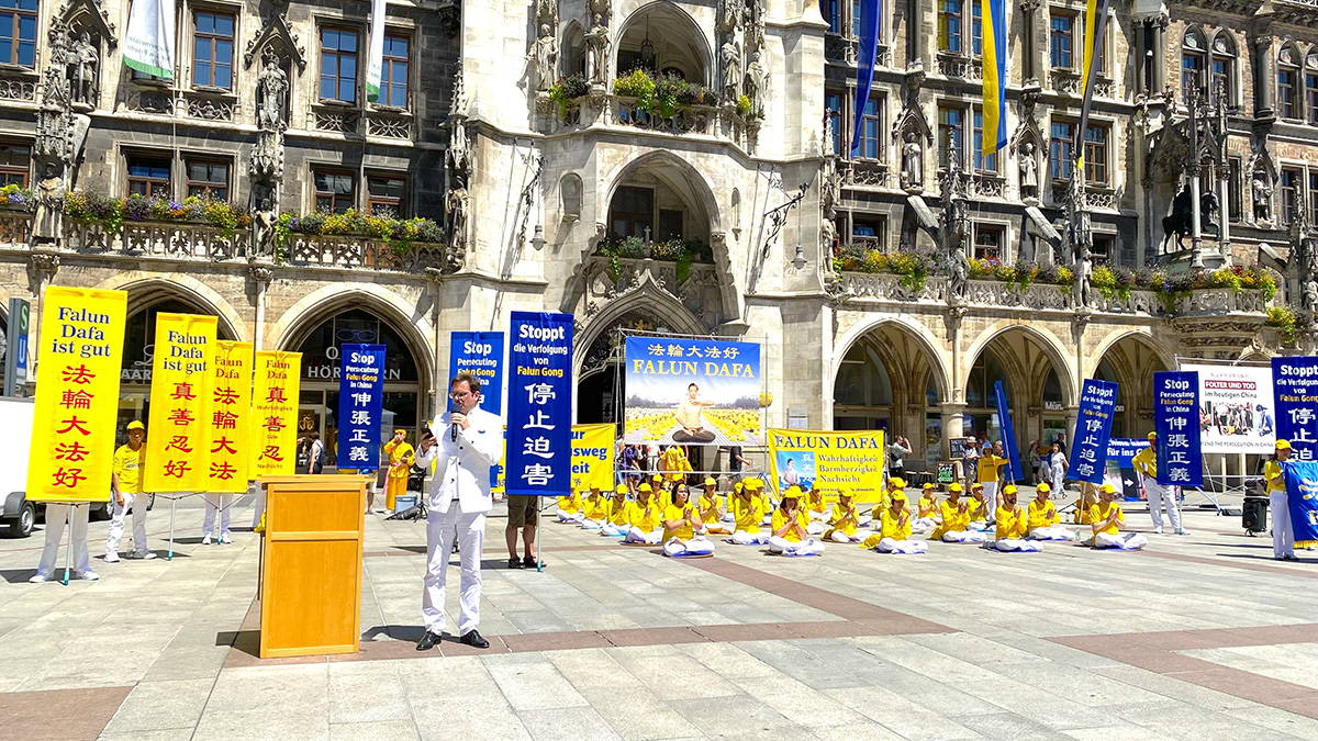 【明慧网二零二三年七月十八日】(明慧德国记者站慕尼黑报道)二零二三年七月十五日,德国法轮功学员在慕尼黑举办了集会,纪念法轮功学员反迫害二十四周年,呼吁德国政府和社会关注中共迫害法轮功的罪行,共同制止迫害。活动得到多位德国国会、州议员及政要的来函声援。德国国际人权协会中国事务负责人胡贝特·科珀(Hubert Körper)到场支持,他呼吁德国社会共同制止中共迫害法轮功。
