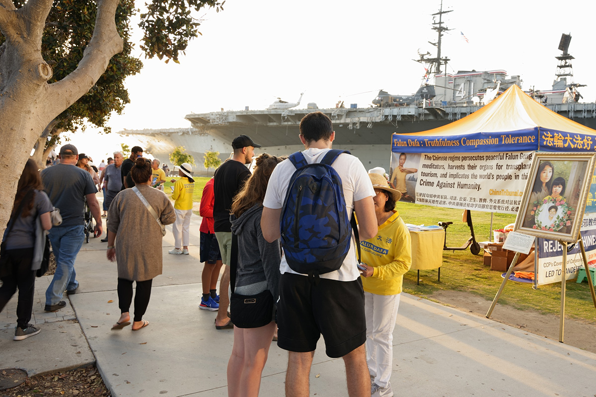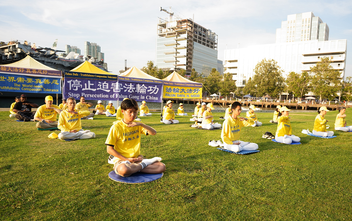 来自加州中部地区的年轻人安德鲁·阿亚拉(Andrew Ayala)看了法轮功学员的功法演示后说:“非常独特,也非常美。”他和同伴都签名支持法轮功学员反迫害。“因为我了解了在那里发生的对法轮功的迫害,很多悲剧,我希望能做点什么,我希望我的签名能帮助拯救生命。”他说。
