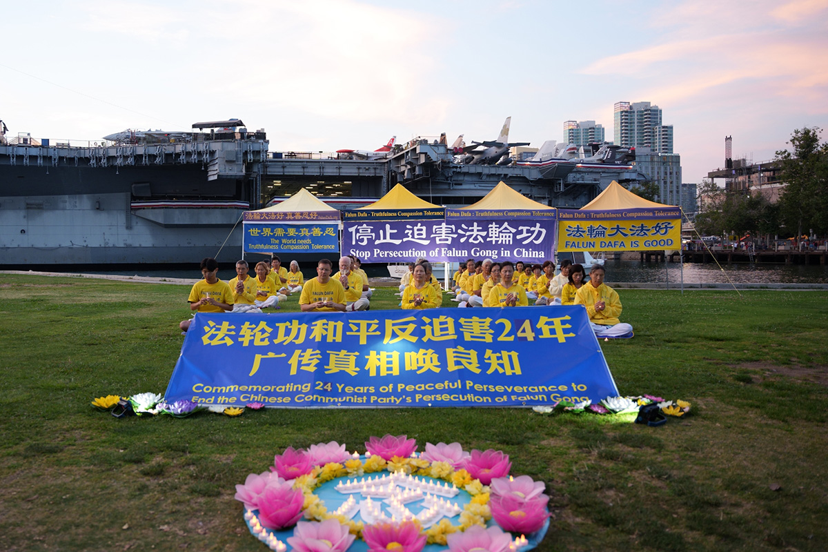 ![]() 图5~6:圣地亚哥法轮功学员举行烛光夜悼 |