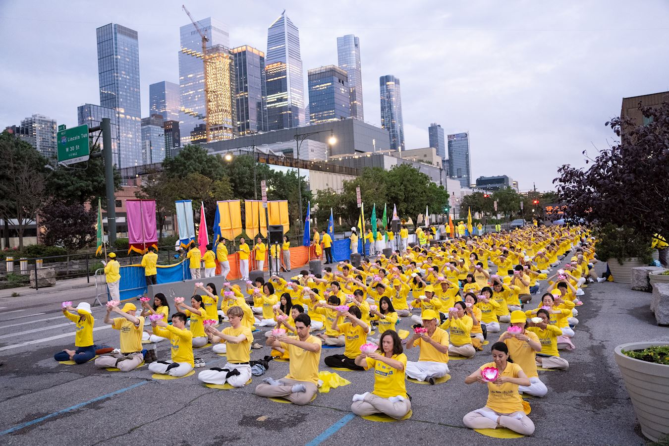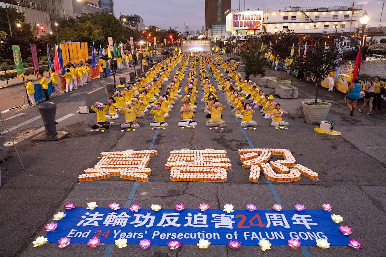'图1~5:二零二三年七月十六日晚,纽约部份中西族裔法轮功学员,来到曼哈顿的中领馆前举办“七·二零”烛光夜悼活动。'
