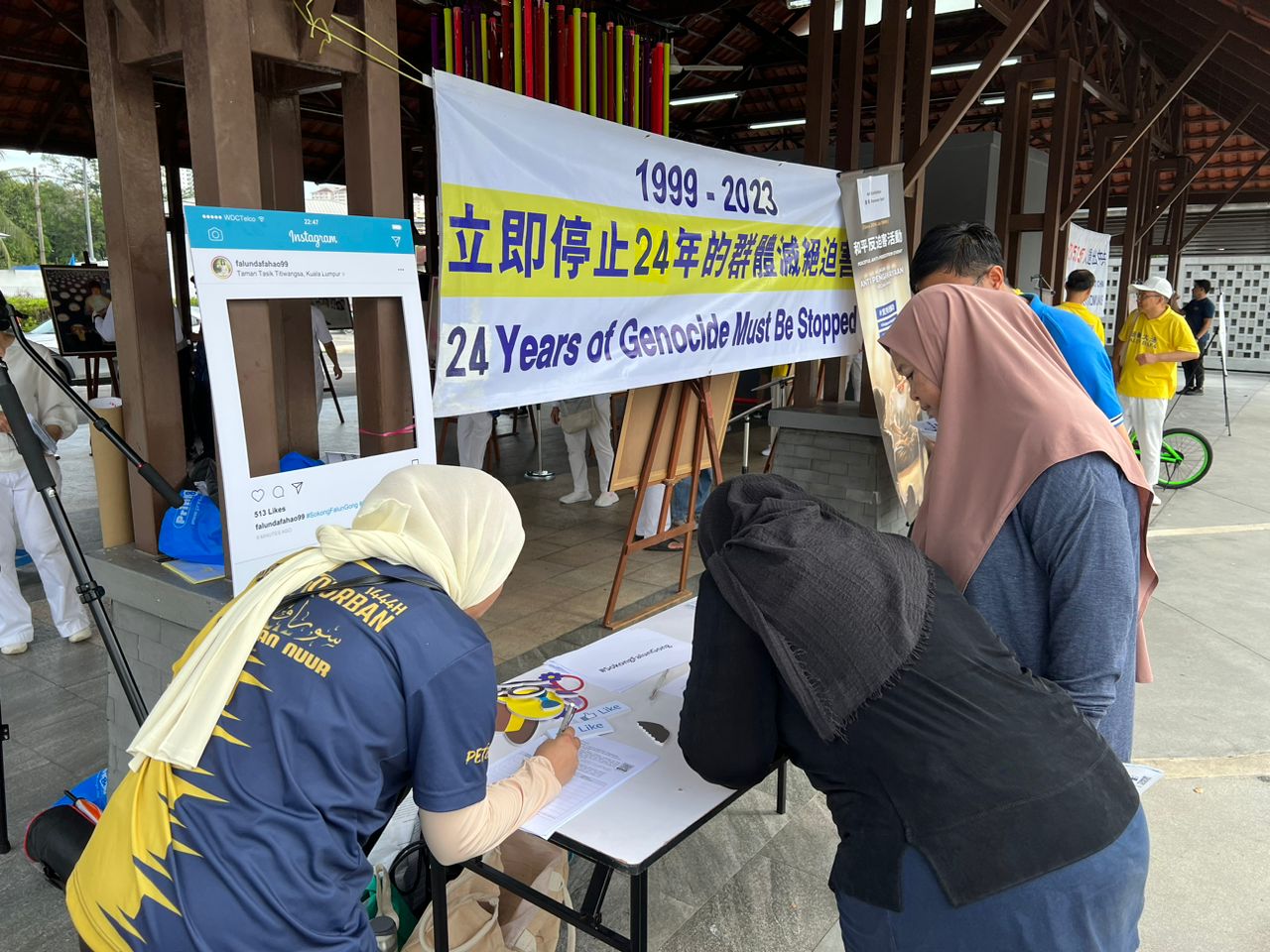 图一点2023 年七月9 日,马来西亚法部份法轮功学员在吉隆坡蒂蒂旺沙公园,举办了七·二零反迫害二十四周年活动。