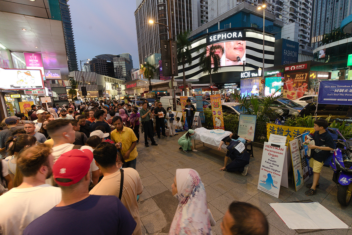 华灯初上,行人熙攘。吉隆坡的星光大道上,法轮功学员以音乐剧《高贵的灵魂在风中》掀起了震撼人心的揭露活摘器官演示活动。这场音乐剧不仅警示着邪恶势力对法轮功的迫害,让人们深刻感受到了法轮功学员所面临的极度抉择和邪恶威胁以及他们坚贞不屈的精神。
