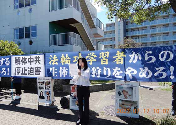 七月二十日,部分日本法轮功学员分别来到各地所在地的中领馆前,反对中共对法轮功的残酷迫害,期盼唤醒更多人的正义良知,共同制止中共暴行。
