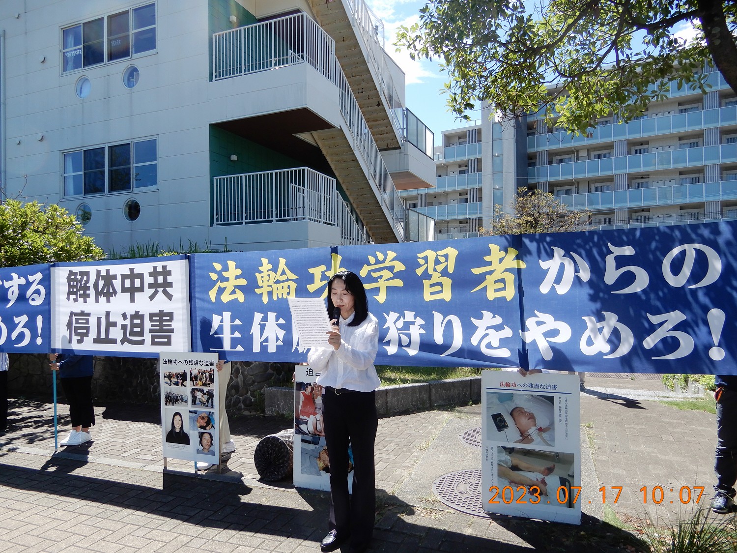 法轮功学员以中文和日文宣读声明文的形式,向日本民众揭露中共的邪恶本质的同时,呼吁国际社会看清中共的本质,共同制止危机全球的中共专制暴政。