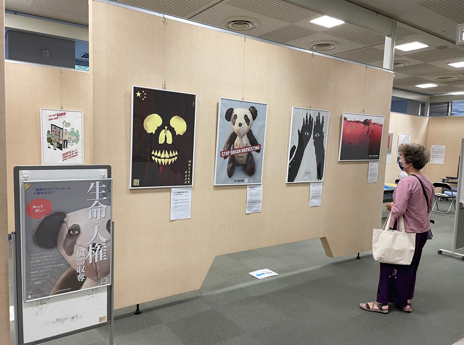 图1~2:二零二三年七月十一日至十七日,制止中共活摘器官国际获奖作品海报展,在日本福冈市促进健康支援中心一楼社区大厅举办举办。