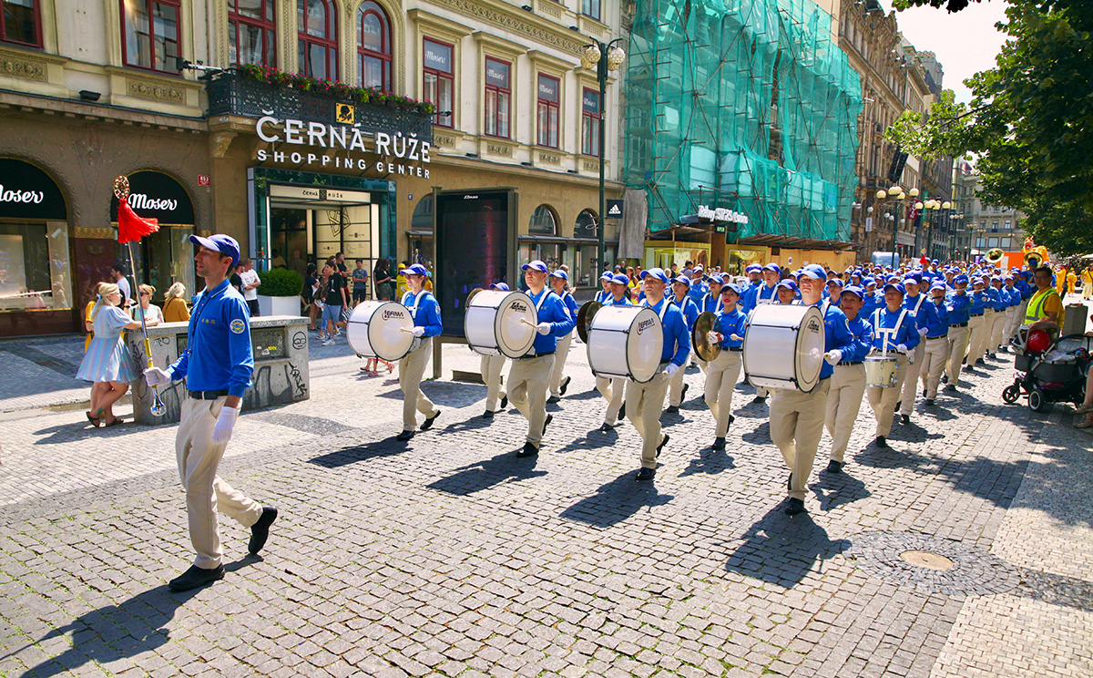 法轮功学员的集会游行活动当天,布拉格天气凉爽,游人如织。时逢中欧最大的民俗节在布拉格召开,来自世界二十多国五十多个团体也聚集在布拉格。法轮功学员的集会与游行都吸引了大量民众驻足观看。多国民众在了解了中共迫害法轮功的真相之后,纷纷签名声援法轮功学员反迫害。