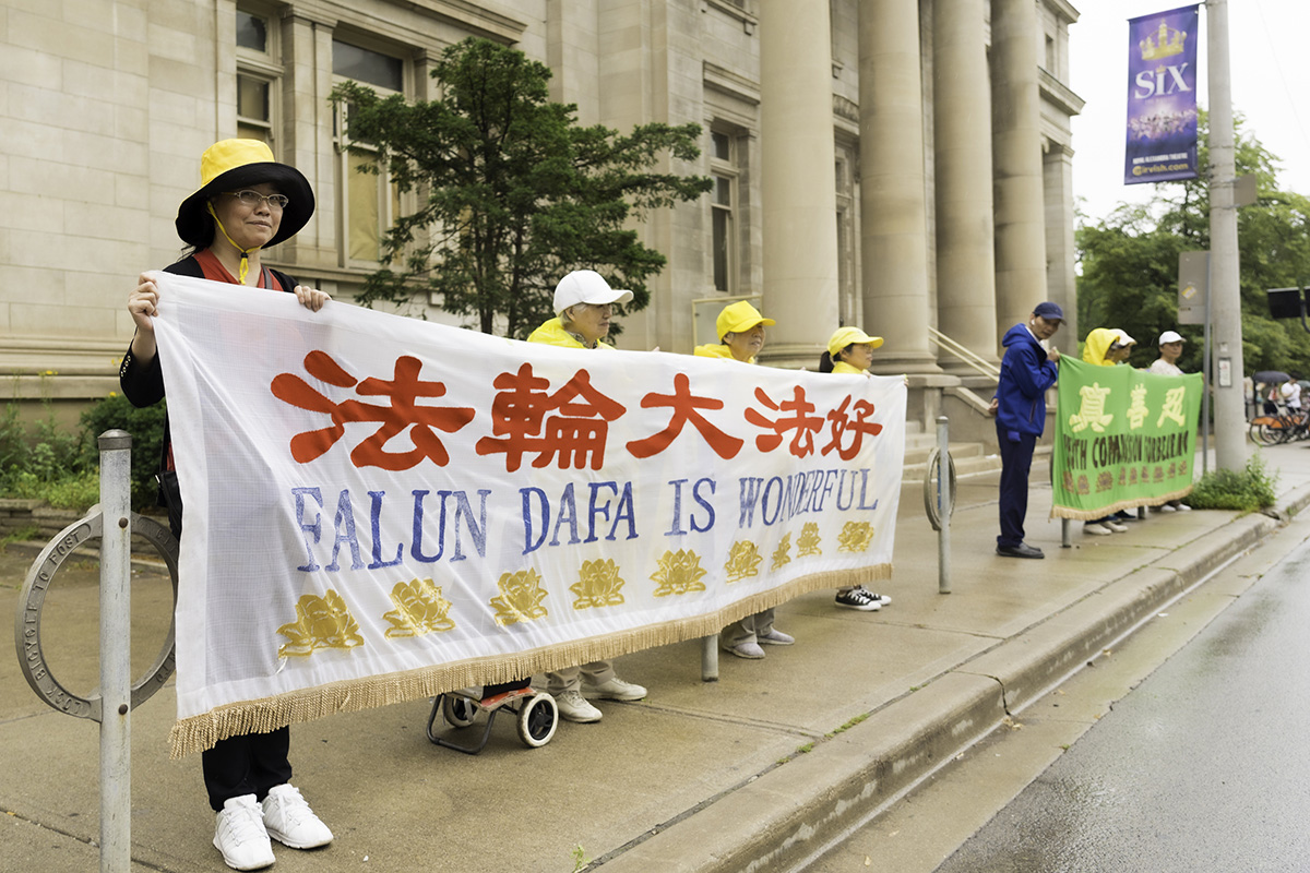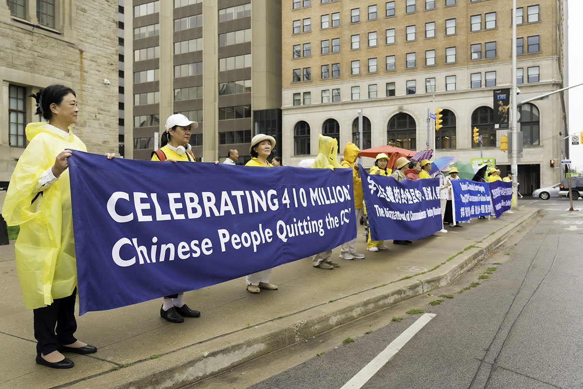 【明慧网二零二三年七月三日】(明慧多伦多记者站报道)​二零二三年七月二日,加拿大多伦多法轮功学员在多伦多市中心举办了真相横幅展,庆祝四亿一千万中国人退出中共党、团、队组织,迎接光明未来。随着《九评共产党》问世近二十年,中国民众陆陆续续表态抛弃中共,形成了势不可挡的“三退”大潮。