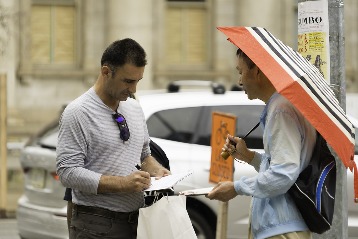 弗兰兹(Franz)是菲律宾人,在多伦多生活。他经过活动现场,第一次听说了法轮大法以及中共对学员的迫害。他立刻在征签板上签了字。
