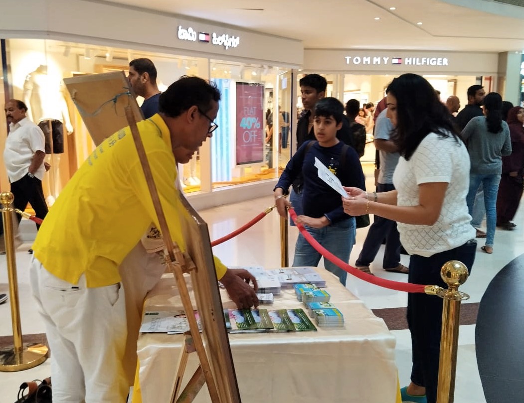 ![]() 图9:二零二三年七月二十三日,班加罗尔法轮功学员聚集在该市的Nexus Koramangala购物中心设立展位,传播法轮功的真相。 |