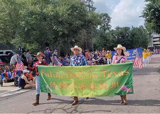 七月四日,来自德州休斯顿和圣安东尼奥的部分法轮功学员参加了南蒙哥马利县伍德兰的独立日游行。