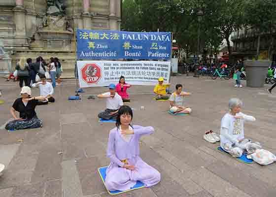 七月的最后两个周末,法轮功学员分别在巴黎中心地带的夏特莱街区和圣米歇尔广场集体炼功,向人们介绍法轮功并揭露中共的迫害,活动吸引了很多游客。