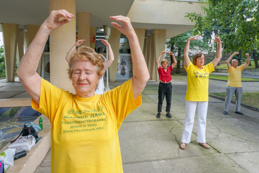 奥尔加·亚科娃(Olga Yarkova)从另一个国家来到俄罗斯。一个多月前,在一位圣彼得堡朋友的推荐下,她在皮亚季戈尔斯克找到了法轮功炼功点。亚科娃有肩伤,导致右臂残疾,她用尽所有的治疗方法均无效果。
