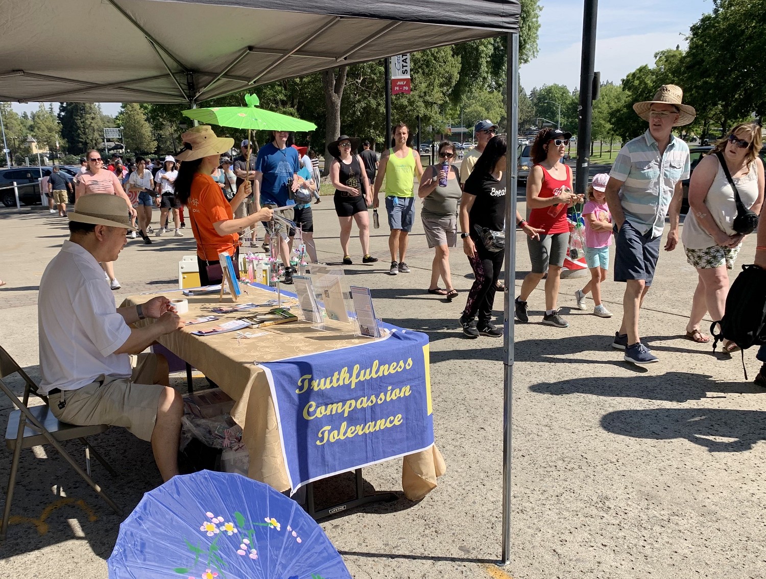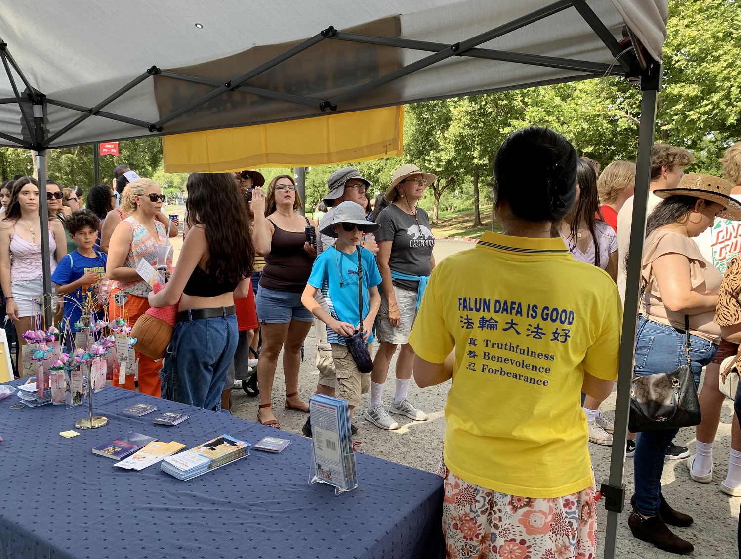 【明慧网二零二三年八月二日】二零二三年七月十五至七月二十九日的连续三个周末,加州首府沙加缅度的法轮功学员都在每年一度的加州博览会场外的言论自由区设立展位。向参观的民众及游客介绍这一起源于中国,以真、善、忍为准则的古老传统功法,民众非常认同且喜爱法轮功。