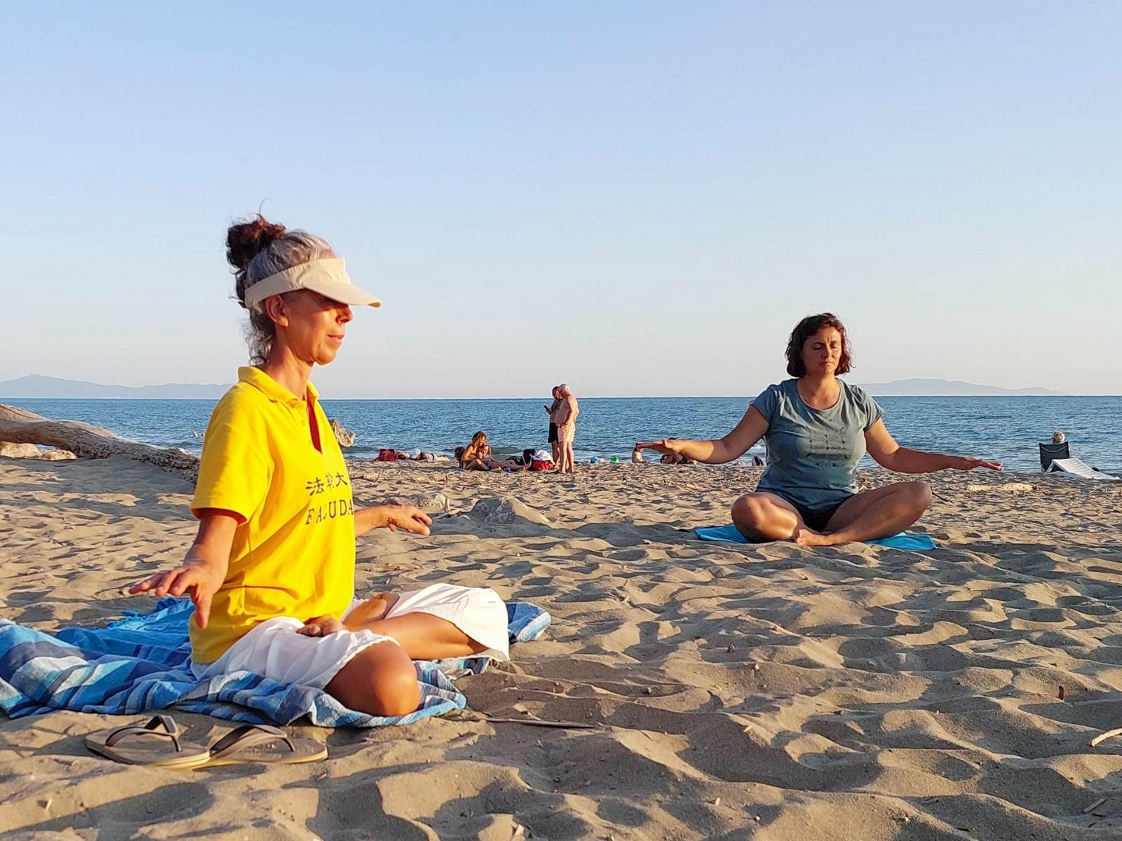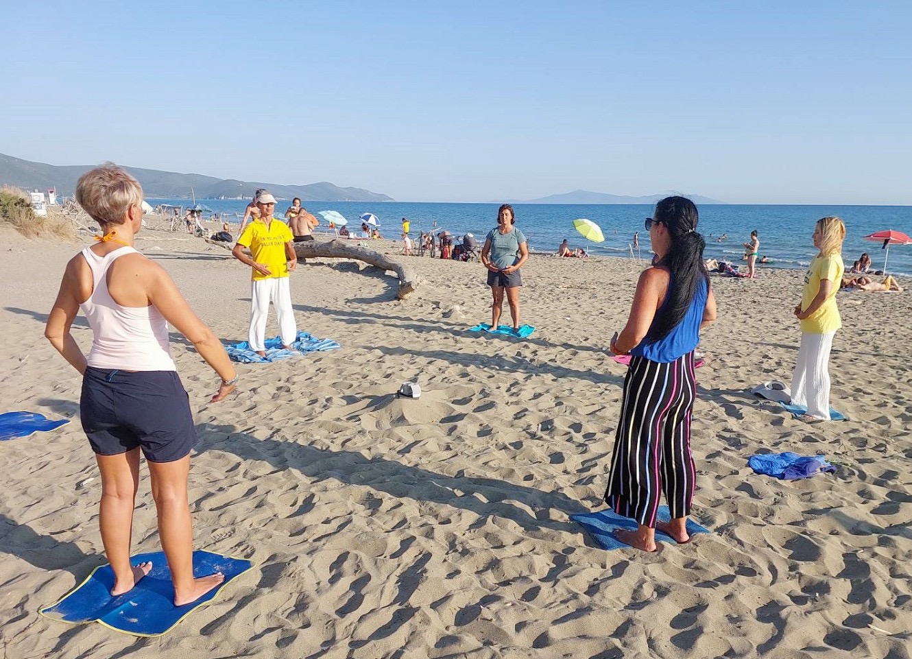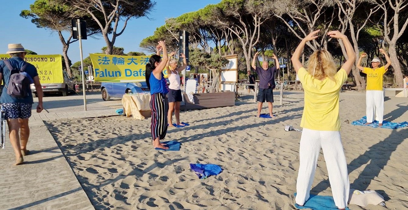 ![]() 图1~3:二零二三年八月十九日,法轮功学员在阿尔贝塞(Alberese)海滨公园,举行炼功弘法活动。民众和游客踊跃加入学炼法轮功。 |