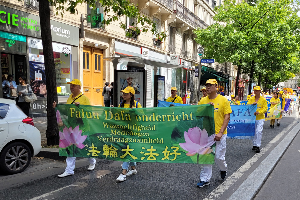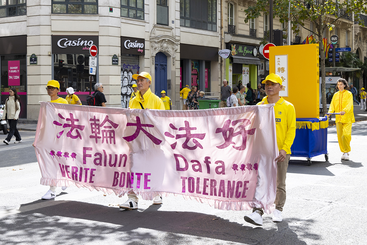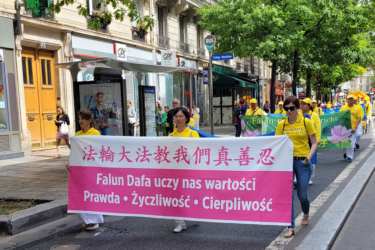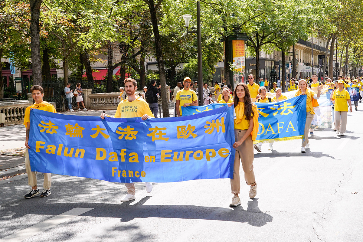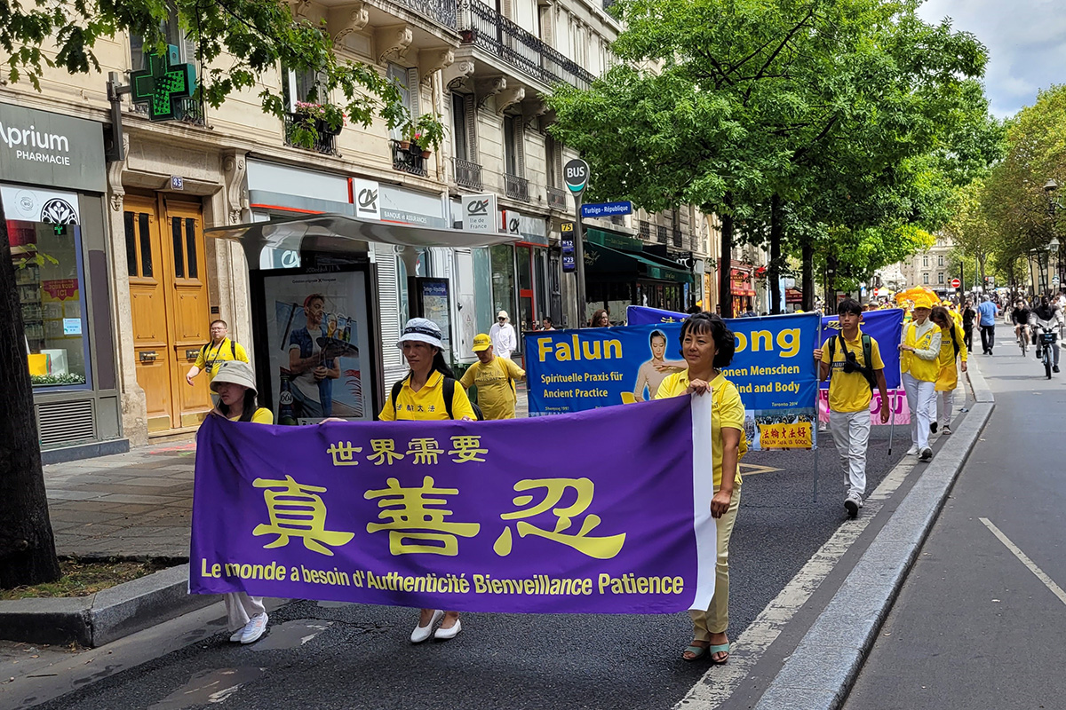 巴黎退休教师吉勒-波蒂埃(Gilles Pottier)看到法轮功学员的游行队伍没有警察来维持秩序,感到非常惊讶。他觉得法轮功学员的信仰非常好,说:“真、善、忍是非常美好的价值。”