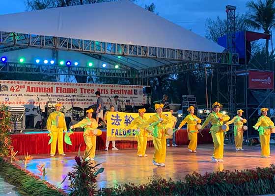 七月二十八日至三十日,塞班岛在苏苏比城市中心迎来一年一度的第四十二届火树艺术节,塞班岛法轮功学员应邀参加了盛会。