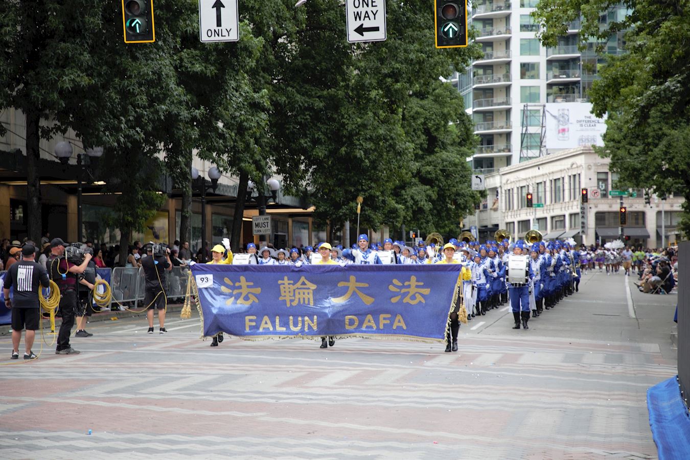 海洋节是一个有着七十多年历史,美国西北规模最大的夏日系列庆典活动,包括独立日烟花、炬光游行、军舰周、飞行表演,以及各个城市社区的嘉年华等大大小小数十个活动。夏天是西雅图最美的季节。西雅图法轮功学员与美西部分学员一如既往,精心准备了法船花车、横幅队、腰鼓队和天国乐团方阵,第十七次参加炬光游行。