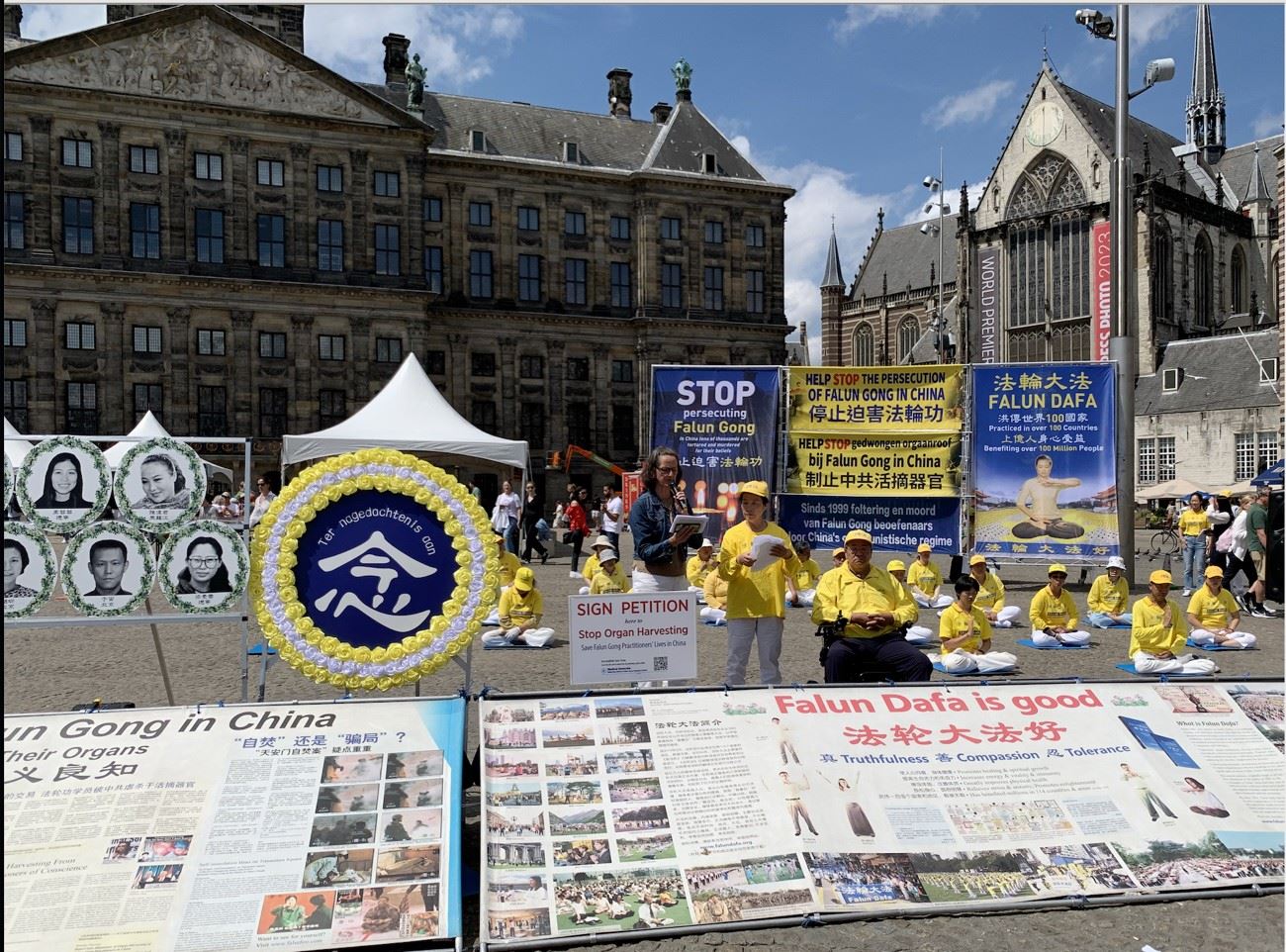 图9:二零二三年七月十五日下午,来自荷兰各地的法轮功学员齐聚水坝广场,举办反迫害二十四周年纪念活动。