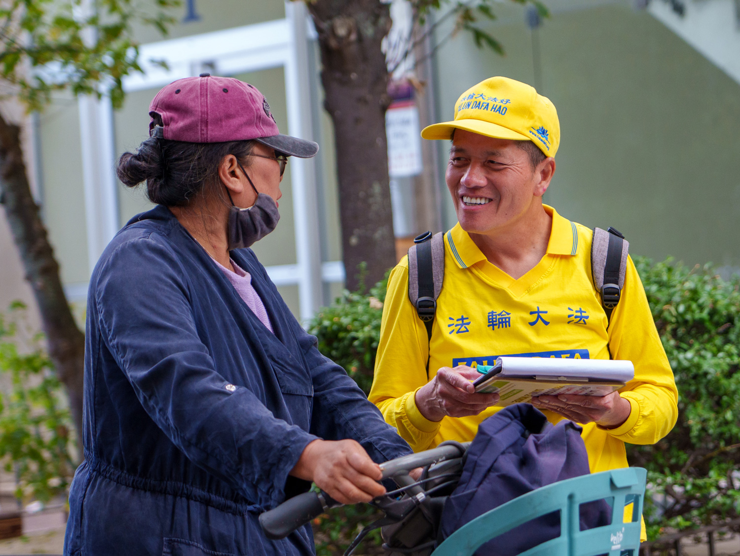 学员向他们介绍了法轮大法是什么,弘传世界一百多个国家,受到各国民众的欢迎和喜爱,但唯独在中国,遭到中共独裁政府的疯狂迫害。他们二人都在反迫害的请愿书上签了名。