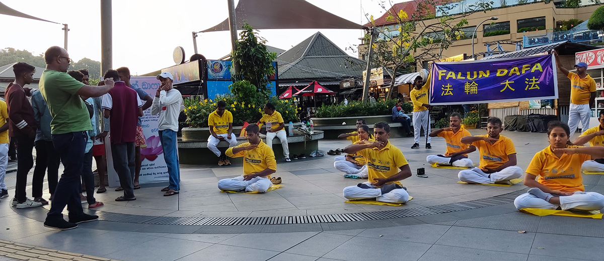 活动现场祥和庄严,吸引了众多路人驻足观看,学员们向民众介绍修炼法轮大法是基于真、善、忍的普世原则,现场展示的大海报详细介绍了中共持续迫害法轮功的真相,许多善良的斯里兰卡人纷纷表达对法轮功的支持和对中共的谴责。