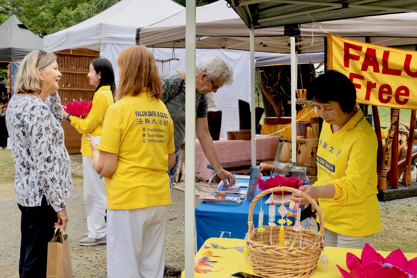 八月二十七日,在道格拉斯港集市(Port Douglas market)上有一百多个展位参展。其中有手工艺品的、服装和各种美味食品,吸引了大量游客,人们尽情享受着这美好的时光。其中法轮功的展位格外醒目,令人驻足观望,了解真相。