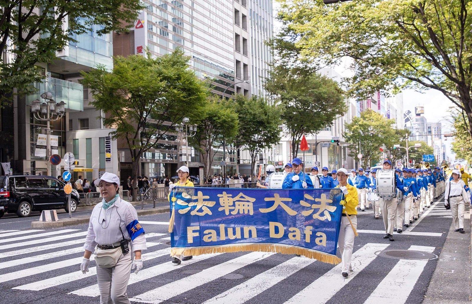 游行活动从荣公园出发,途径日本著名的三越(Mitsukoshi)、松坂屋(Matsuzakaya)等大型百货店聚集的大津通(Otsu-Dori)商店街、大须(Osu)等华人经常出入的地方,还有休息时人们经常逗留的久屋公园(Hisaya-Park)西侧大道。游行所到之处,很多过往民众驻足观看,并来了解法轮大法。有很多市民在听了法轮功学员的介绍后,鼓励学员们:“加油!”“请继续加油!”还有的市民说:“爱知县(Aichi)人民支持法轮功!加油!”