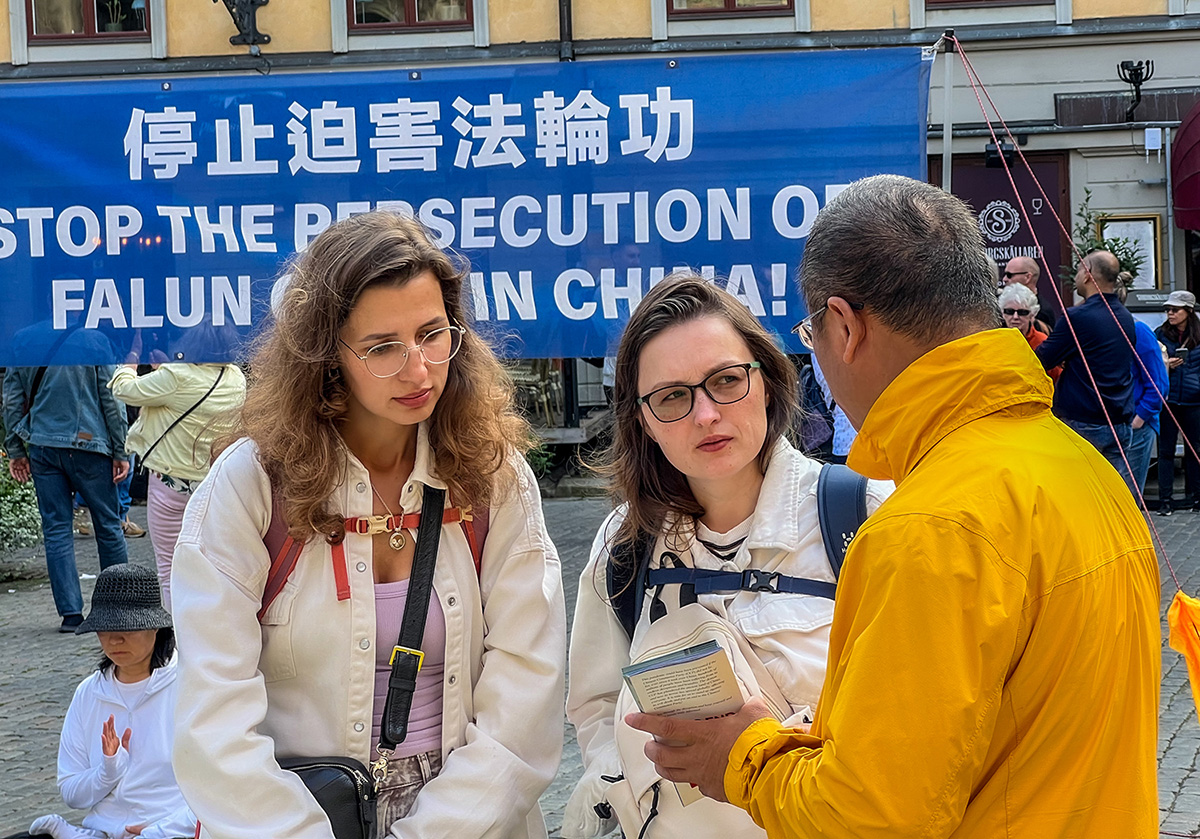 有一位瑞典中年男士,他经过学员们的活动现场时,径直就走到信息台前,拿起笔就在反迫害的征签簿上签名表示支持。他告诉学员:“我曾在欧盟工作过,法轮功在中国遭受迫害的事实真相我都知道,尤其是(中共活摘法轮功学员器官)这个恶行,必须要制止。”