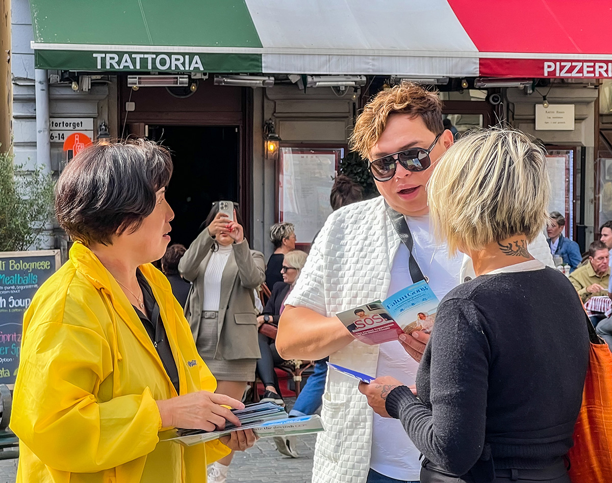 ![]() 图1:二零二三年九月十五日,法轮功学员在斯德哥尔摩王宫附近的钱币广场举办讲真相活动,征集反迫害签名。 |