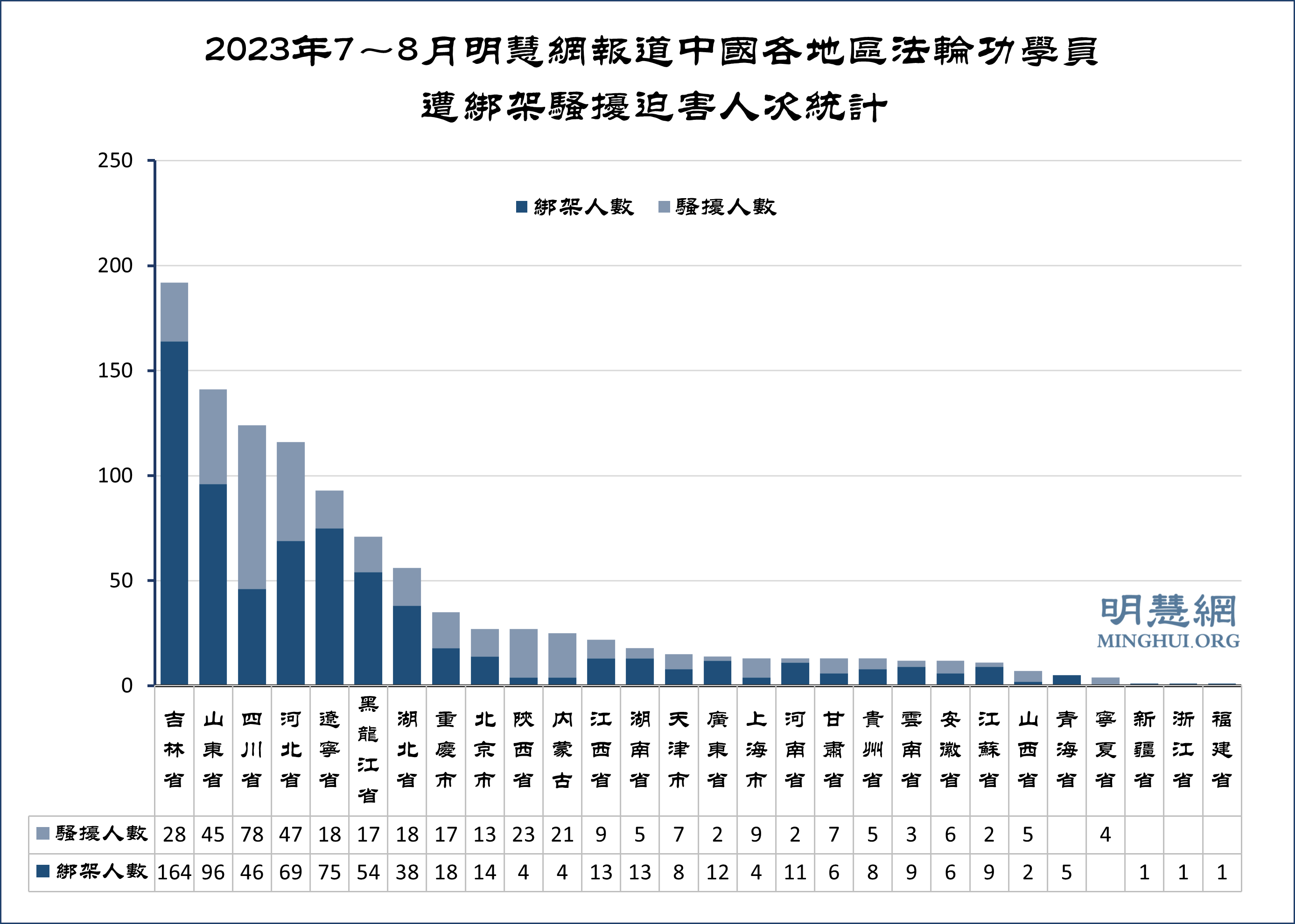 明慧网七~八月报道1082名法轮功学员遭绑架骚扰