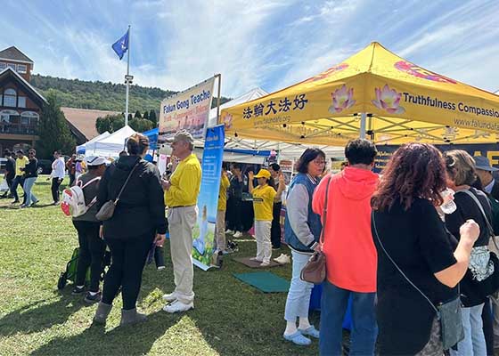 九月十六至十七日,法轮功学员应邀参加了上州杰维斯港市第八届中秋节,法轮大法的展位成为中秋节的一个亮点,一批又一批民众学炼法轮功。