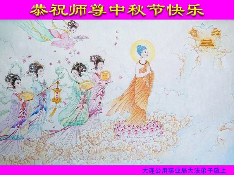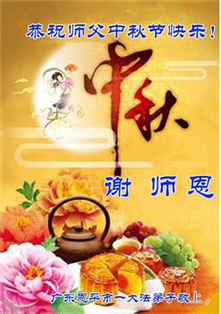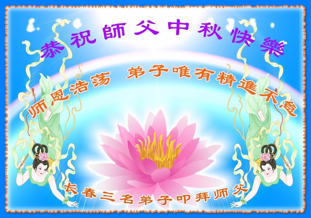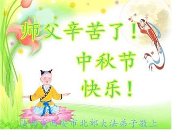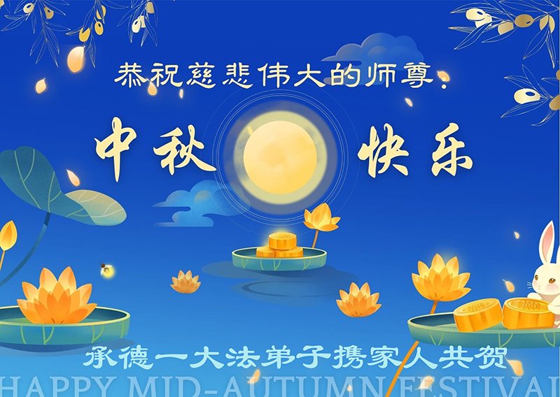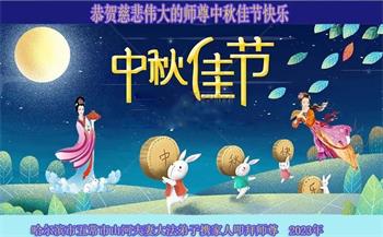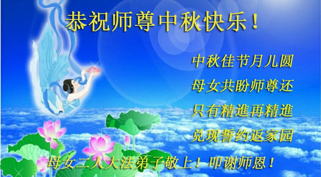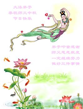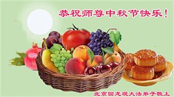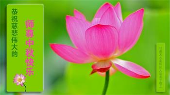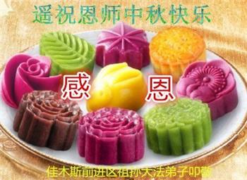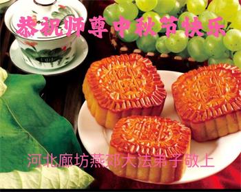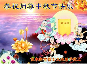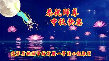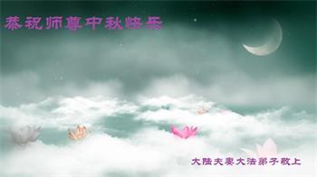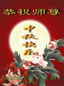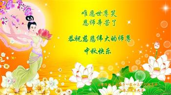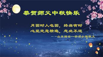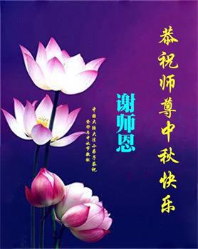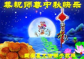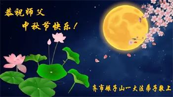 路途遥远,我没有办法给师父送上一盒精美的月饼表达敬意,唯有按照师父法的要求真修、实修,把心修的干干净净,带给慈悲苦度我的师父一些欣慰,惟愿师尊笑!弟子盼师尊早日回国和大陆弟子过一个团圆的中秋节!