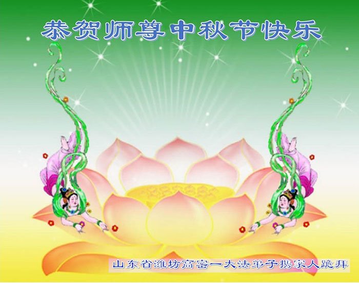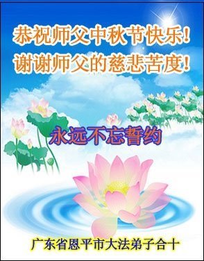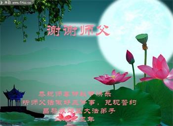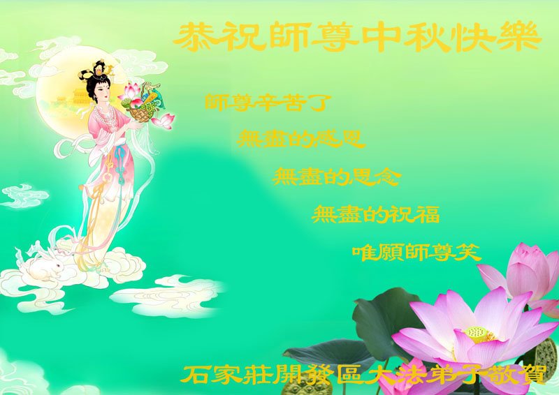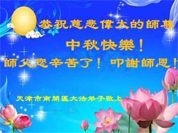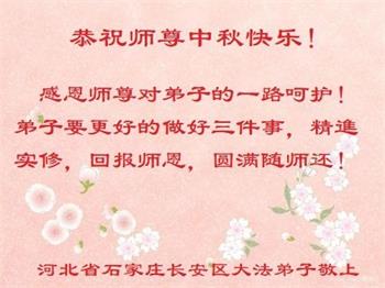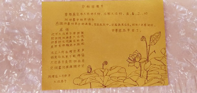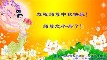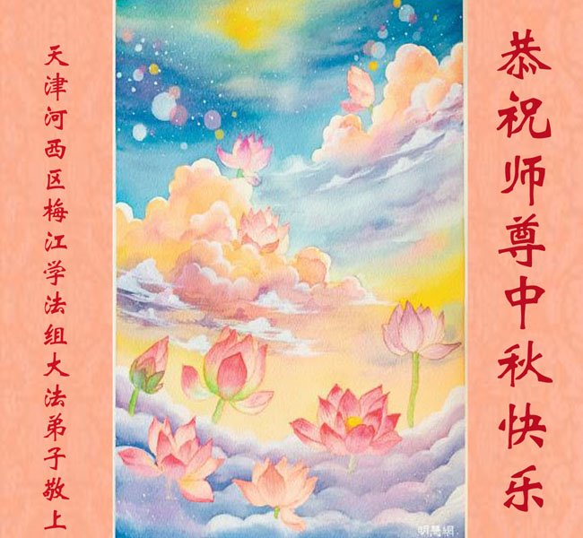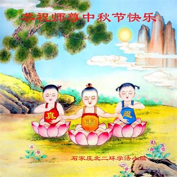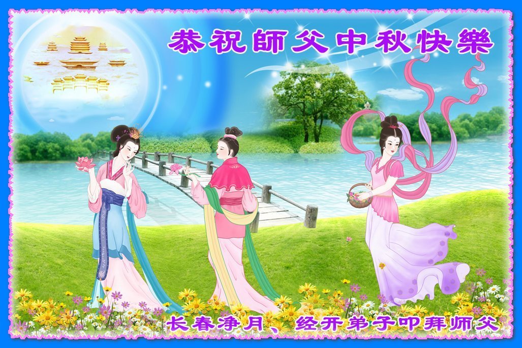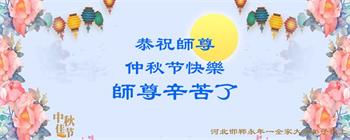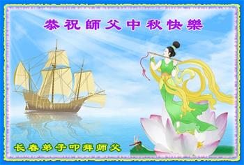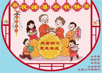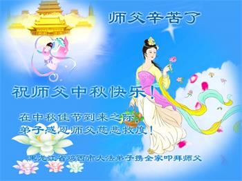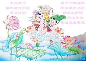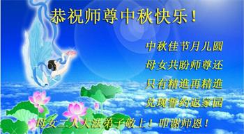 路途遥远,我没有办法给师父送上一盒精美的月饼表达敬意,唯有按照师父法的要求真修、实修,把心修的干干净净,带给慈悲苦度我的师父一些欣慰,惟愿师尊笑!弟子盼师尊早日回国和大陆弟子过一个团圆的中秋节!
