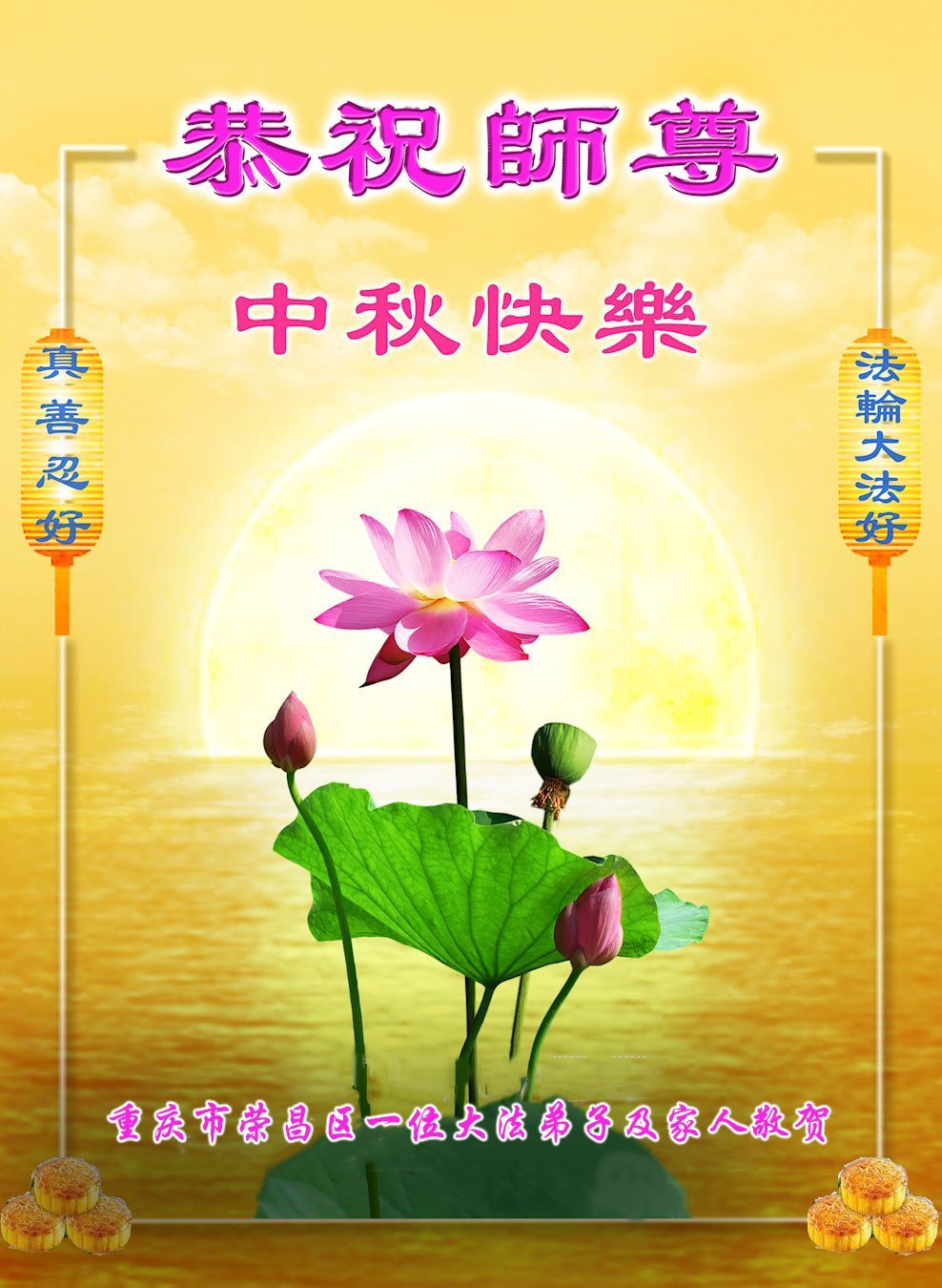 祝法轮大法创始人李洪志大师中秋节快乐!相信“法轮大法好!真、善、忍好!”