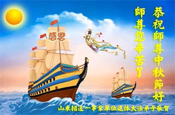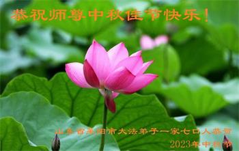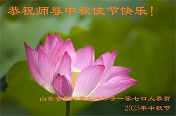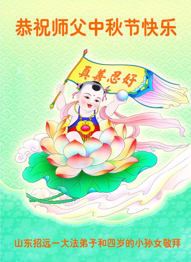 我是山东省聊城市茌平区一明白大法真相的人,家有贤妻、两个儿子、四个孙子。我读书不多,也没多大本事,但二十多年来,我全家老幼身体健康、阳光、好运连连,日子过的红红火火。孩子们事业有成,有车有楼,方圆十里的百姓都羡慕。为啥我家这么顺?我大声告诉世人:因我明白大法真相并做了三退,天天念九字真言,还保护过一位大法弟子,因此大法师父送我全家这么些福份。我们全家感动、感恩,感谢大法师父给予我全家的所有。以最真诚的心祝慈悲伟大的大法师父身体健康、万事顺利,中秋节开心快乐!