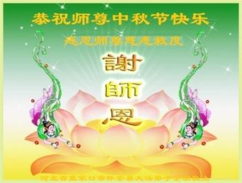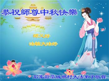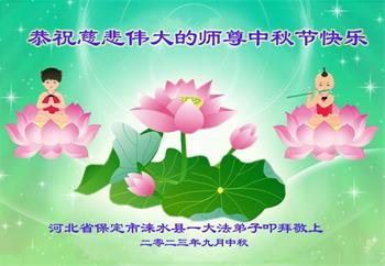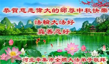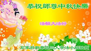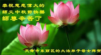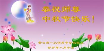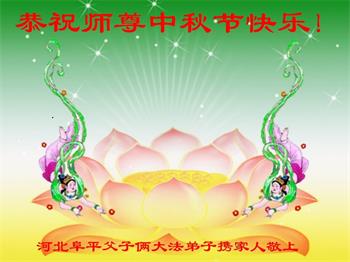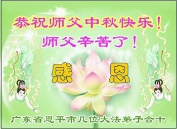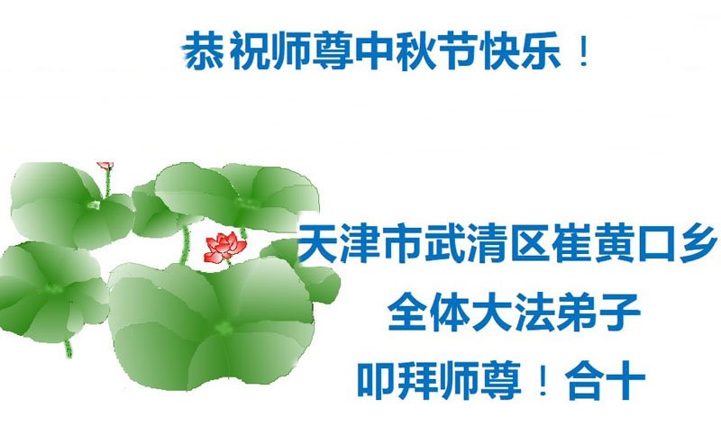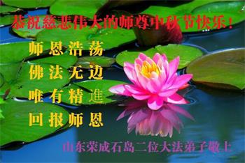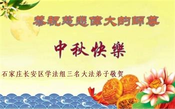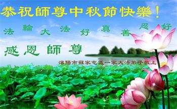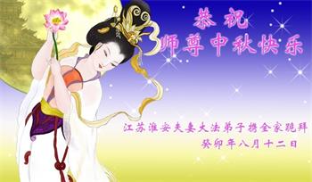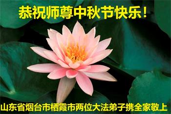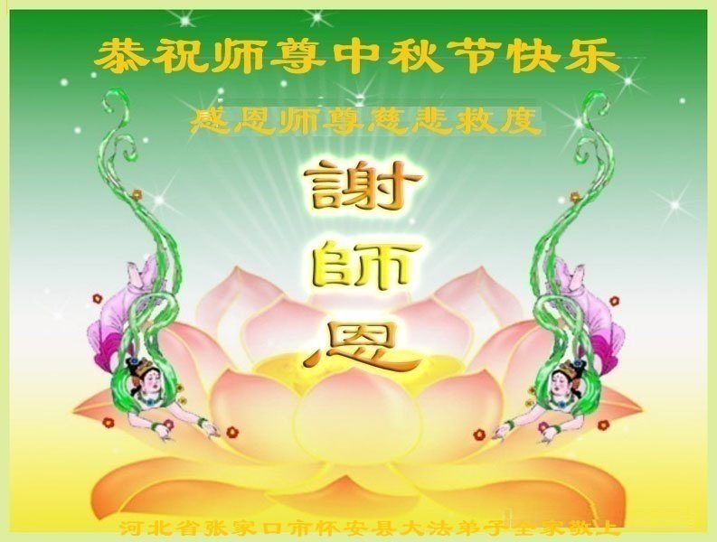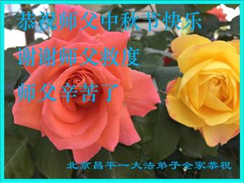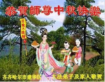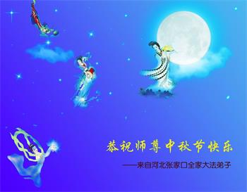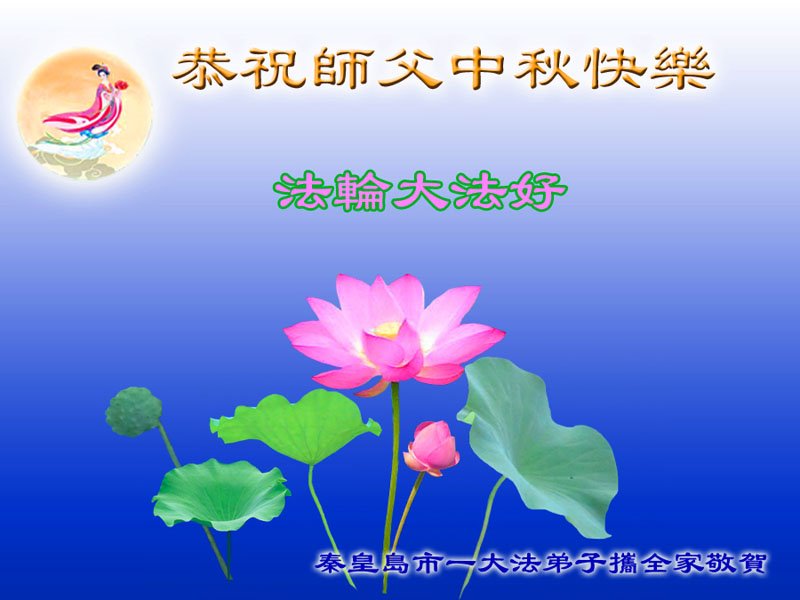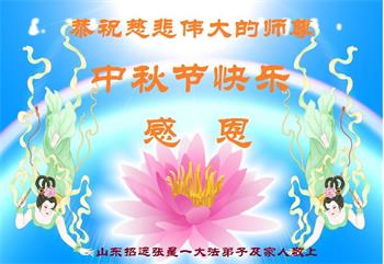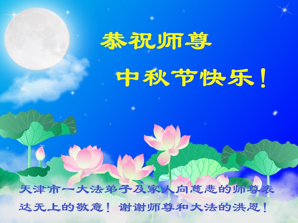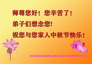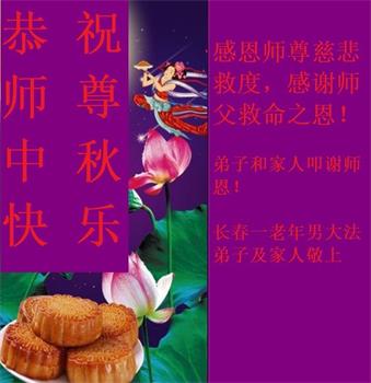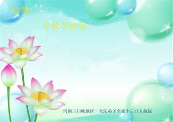 我们家还没有修炼法轮功,但是,我们全家人都知道法轮功是个好功,是教人做个好人,能使身体健康无病的。我们亲戚有炼法轮功的,邻居也有炼的。他们修炼后,变化都很大,是大家公认的好人。这些年,打压这么厉害的情况下,他们不怕死,不怕抓,仍然坚定的修炼法轮功,我们从心里佩服,现在社会上这样的人不多。都是李大师好,才能教育出这么些好徒弟。这些年,因为我们相信法轮功好,帮助法轮功学员躲避迫害,也得到李大师的保护,全家老少身心健康,工作顺利,生活的幸福快乐!我们从心里感谢李大师的恩情。我们全家人恭祝李大师中秋节快乐!李大师您辛苦了!
