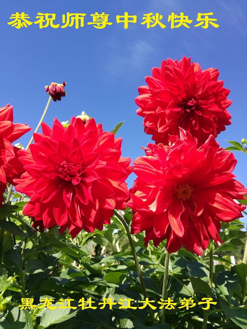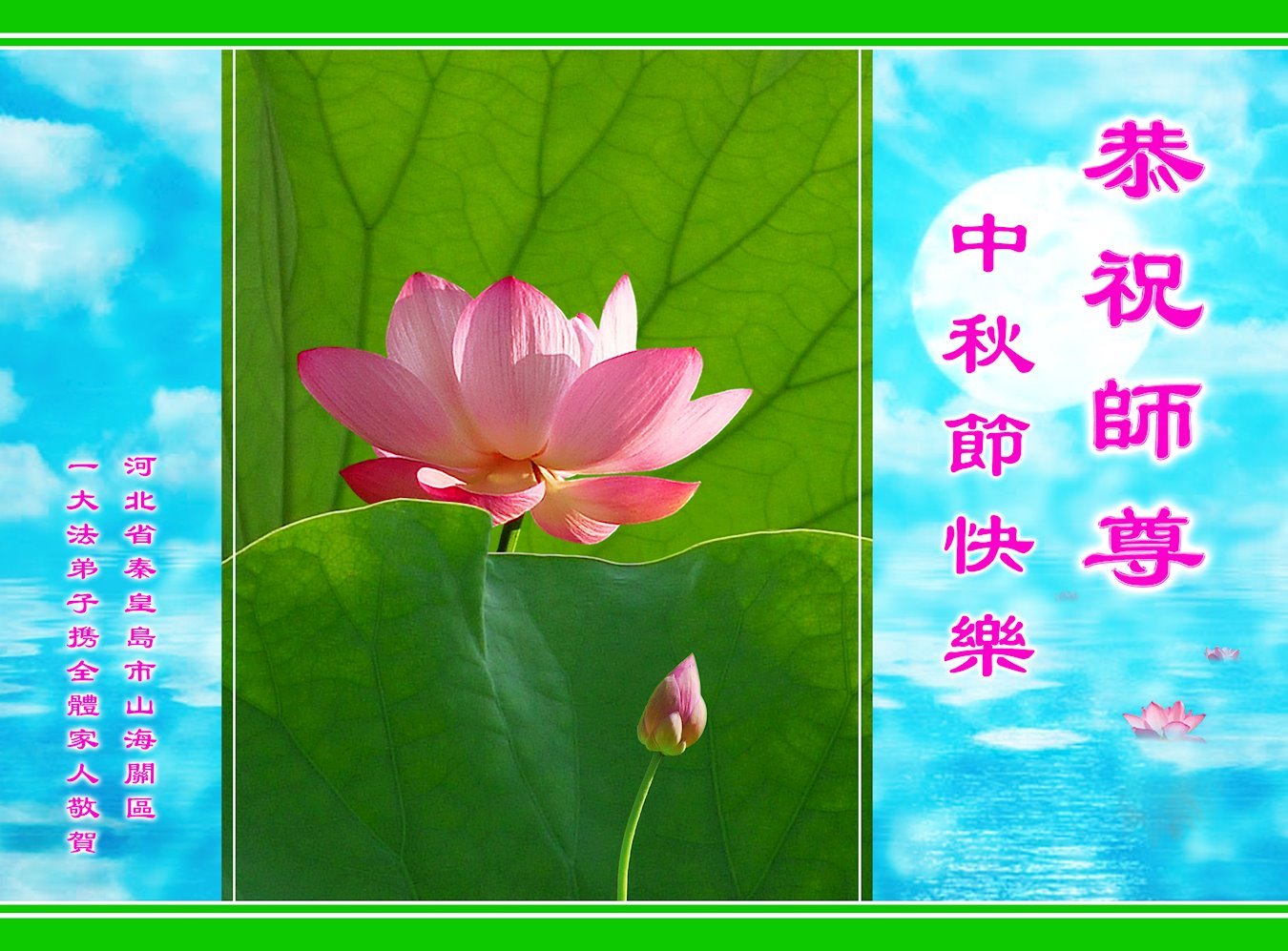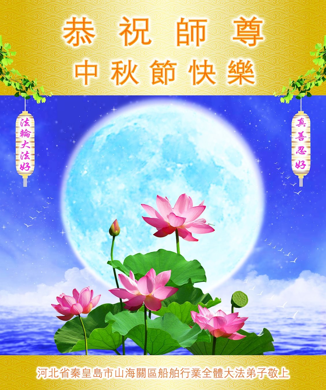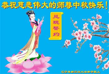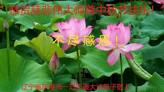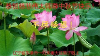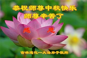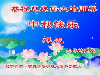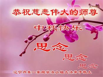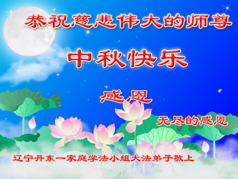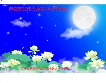 值此中秋佳节,辽宁丹东医疗系统大法弟子向伟大慈悲的师父问好!恭祝师父中秋节快乐!弟子想念师父!师父辛苦了!感恩师父慈悲救度,师恩难报!我们唯有精進。叩拜师尊!