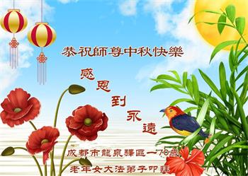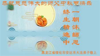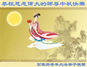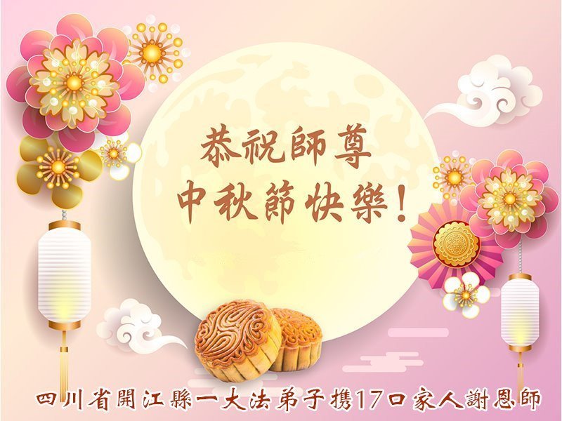 我是大法弟子家人,今年七十七岁,我支持大法弟子救人,更感恩大法师父多次将我从危难的疾病中救下。我无以表达自己对大法、对大法师父的感恩心情,借此中秋佳节之机,也代表和我怀有同样心情的家属向慈悲伟大的师父送上我们最诚挚的祝福:恭祝师父中秋快乐!