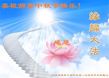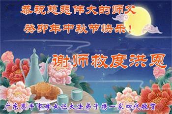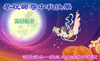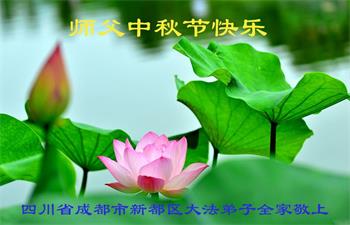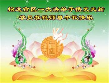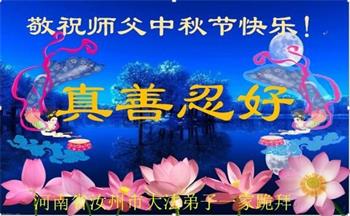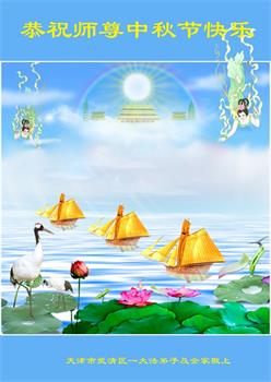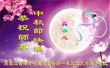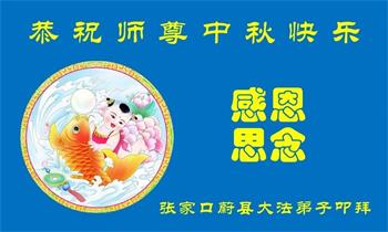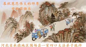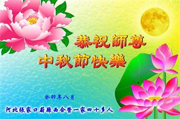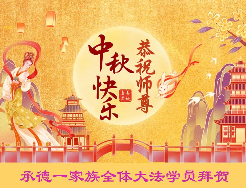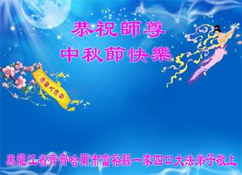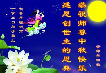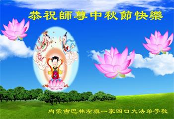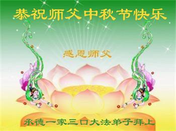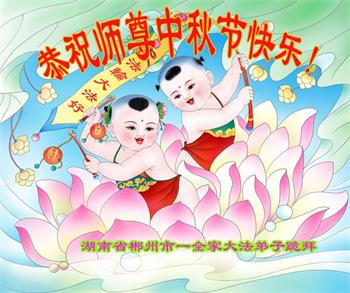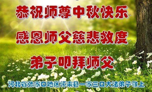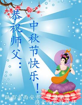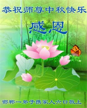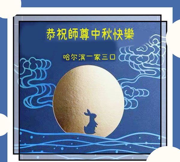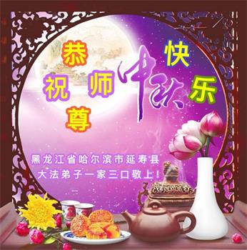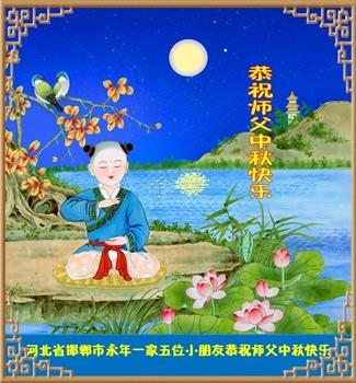 在华北油田工作的一位大法弟子携全家叩拜师父中秋快乐!他表示:“路途遥远,我没有办法给师父送上一盒精美的月饼表达敬意,唯有按照师父的要求真修、实修,给慈悲苦度我的师父一些欣慰!”