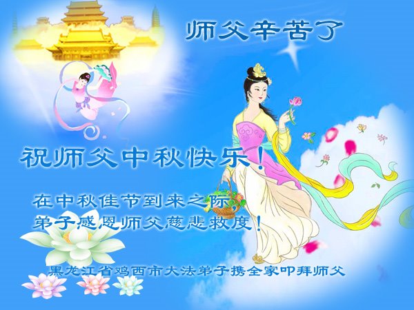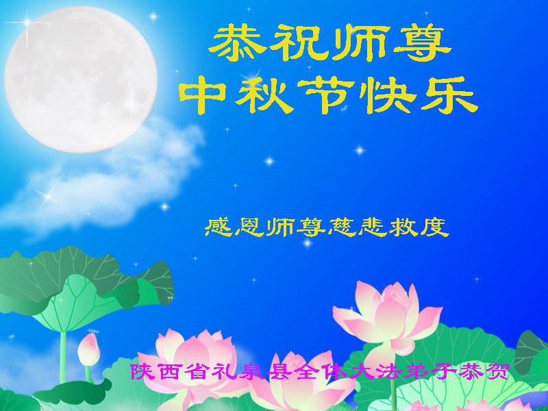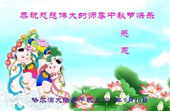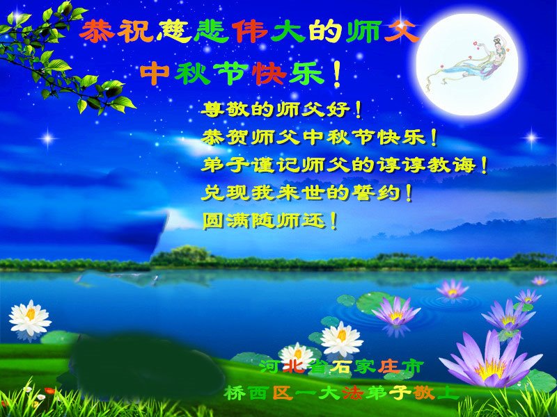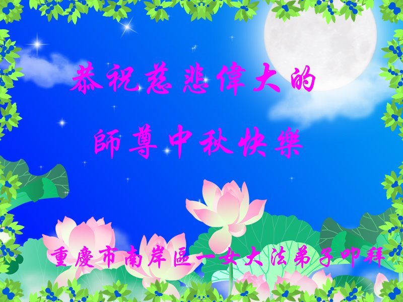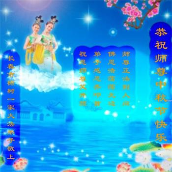 慈悲的李大师:您给人类送来了光明和希望,我们永远感恩法轮大法、感恩李大师。我们衷心的祝您中秋快乐!