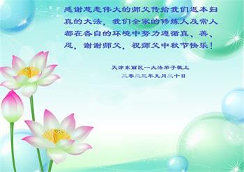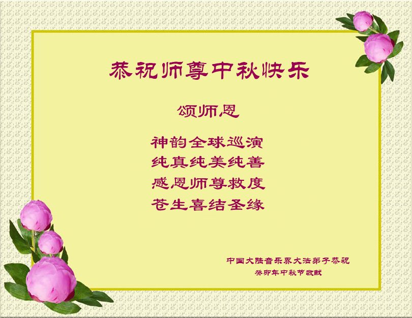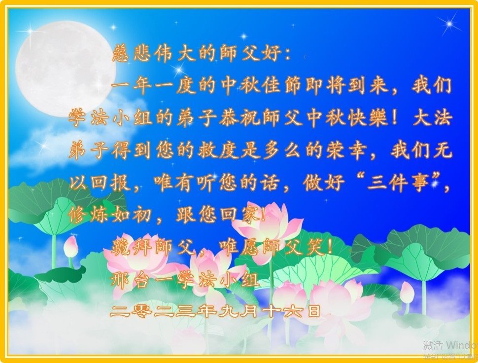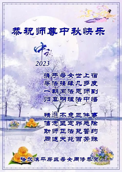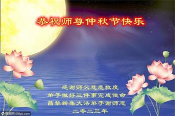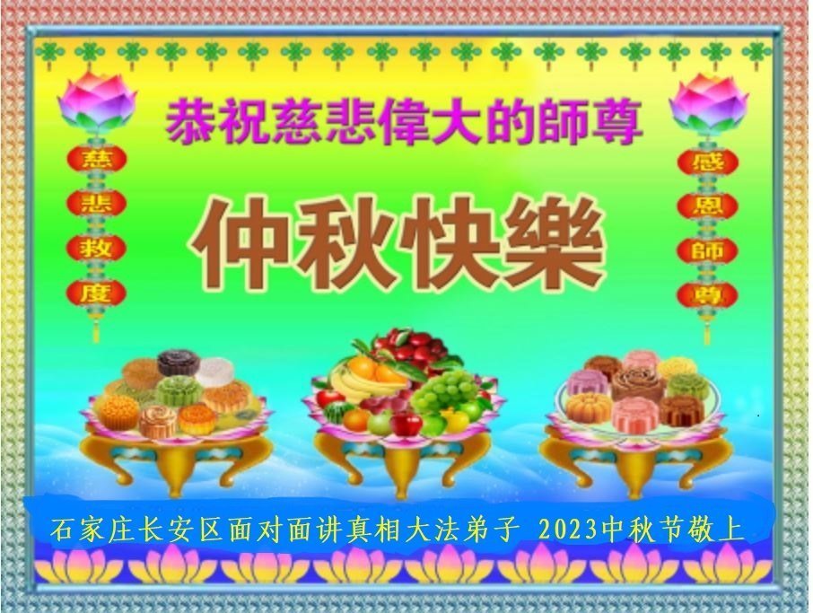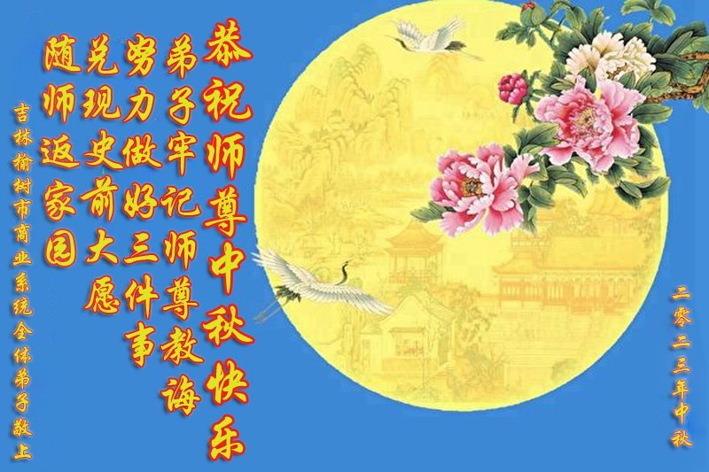 <英文版: https://en.minghui.org/html/articles/2023/9/28/211655.html>中国明真相百姓恭祝大法师父中秋节快乐