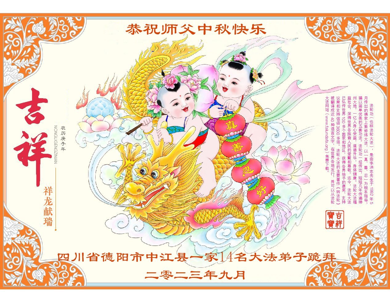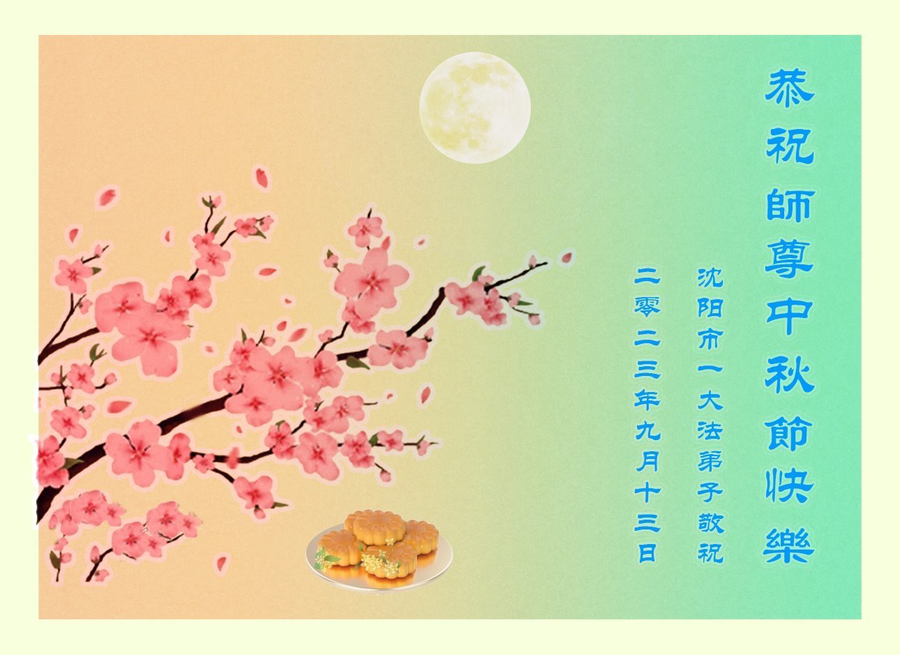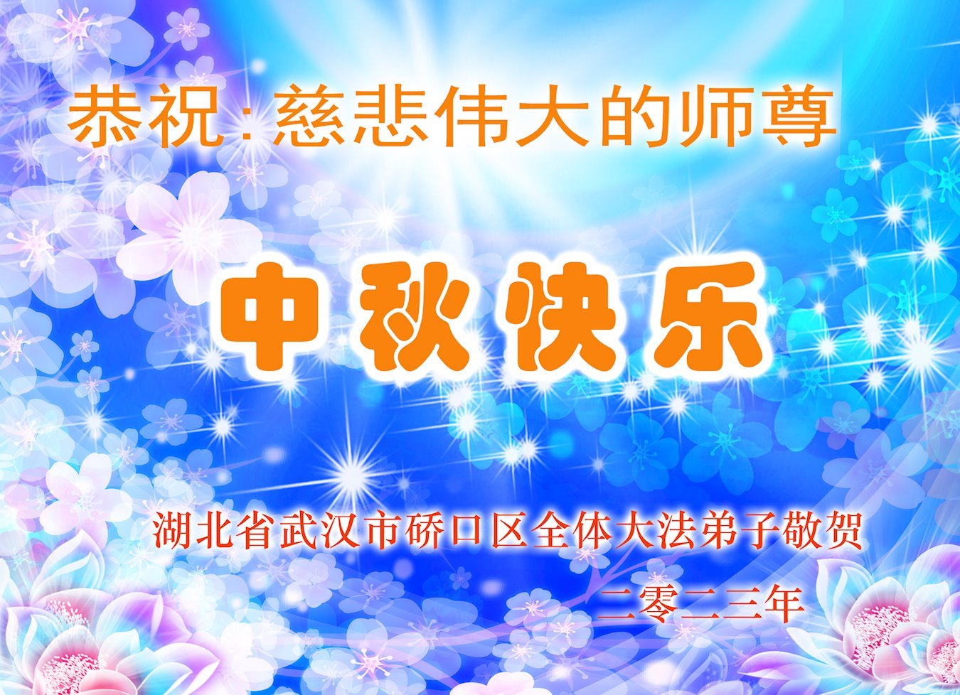 <英文版: https://en.minghui.org/html/articles/2023/9/28/211655.html>中国明真相百姓恭祝大法师父中秋节快乐