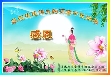 祝师尊中秋节快乐!感恩师尊将法轮大法洪传世界救度众生!弟子一定要精進实修。叩谢师尊慈悲苦度!