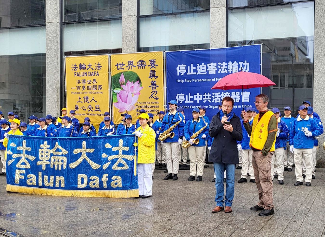 一位拍摄法轮功游行场面的华人说:“法轮功了不起,敢于直面中共的迫害。”
