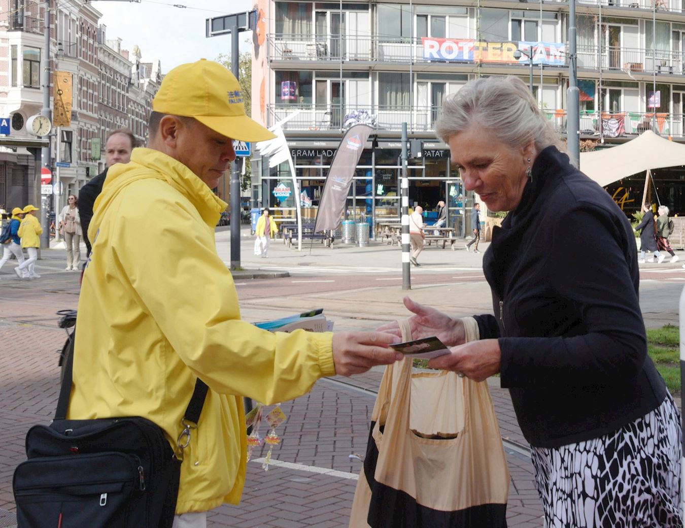 当天,欧洲多国法轮功学员来到荷兰两大城市——首都阿姆斯特丹及鹿特丹,通过天国乐团的演奏、集会和游行等活动向当地民众呈现大法的美好,同时也告诉世人,二十四年来中共残忍迫害法轮功学员,呼吁大家共同制止迫害,制止中共活摘法轮功学员器官的罪行。