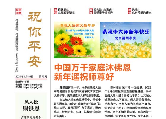 同修好!得知你被非法关押的消息,深表关切,我们同修一部大法,结的是圣缘,新年来临之际,特寄来家书,表达对同修深切的问候和声援。